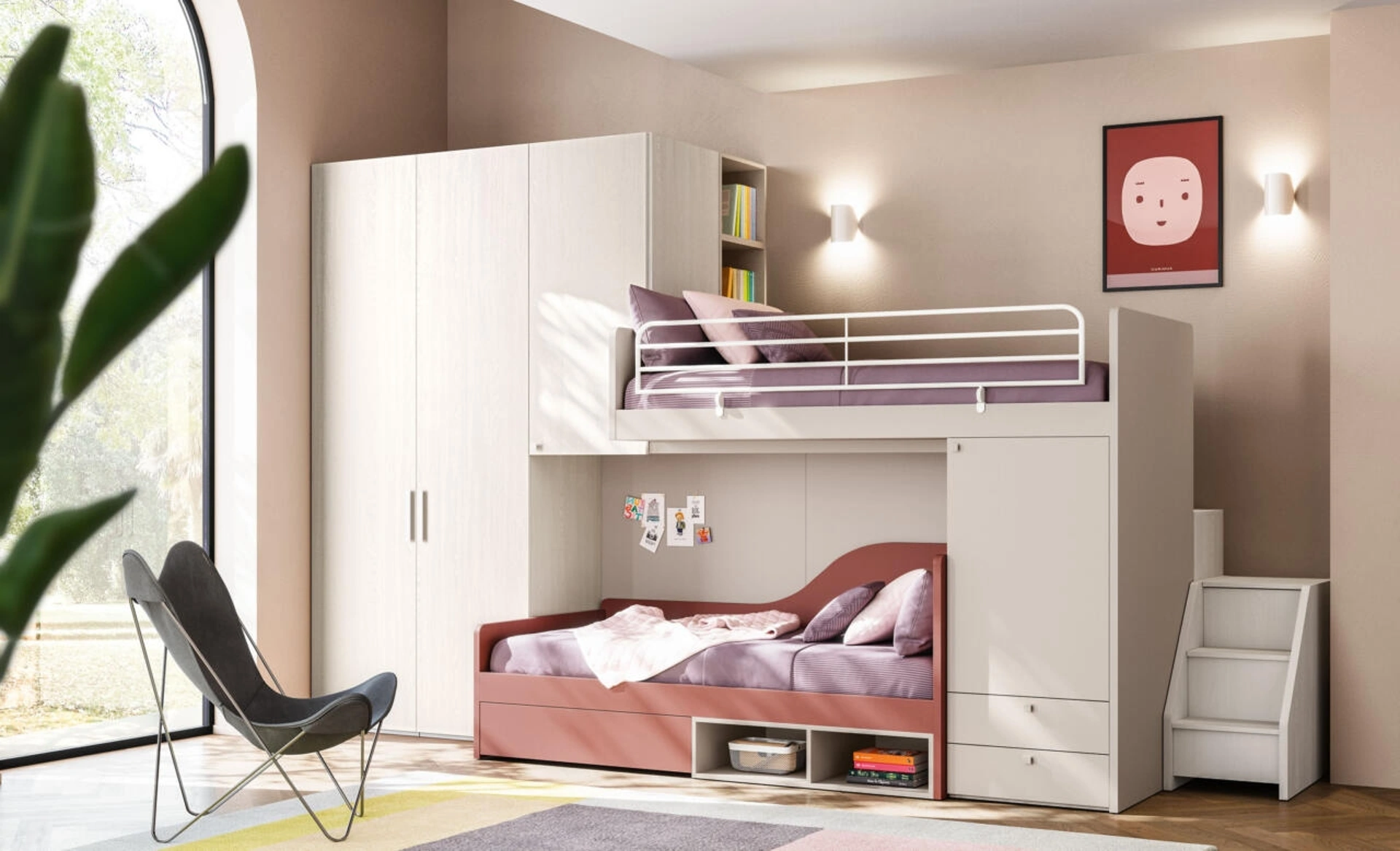 Scopri il modello Cameretta Salvaspazio 54 e tutte le altre Camerette a soppalco moderne per bambine di Mistral