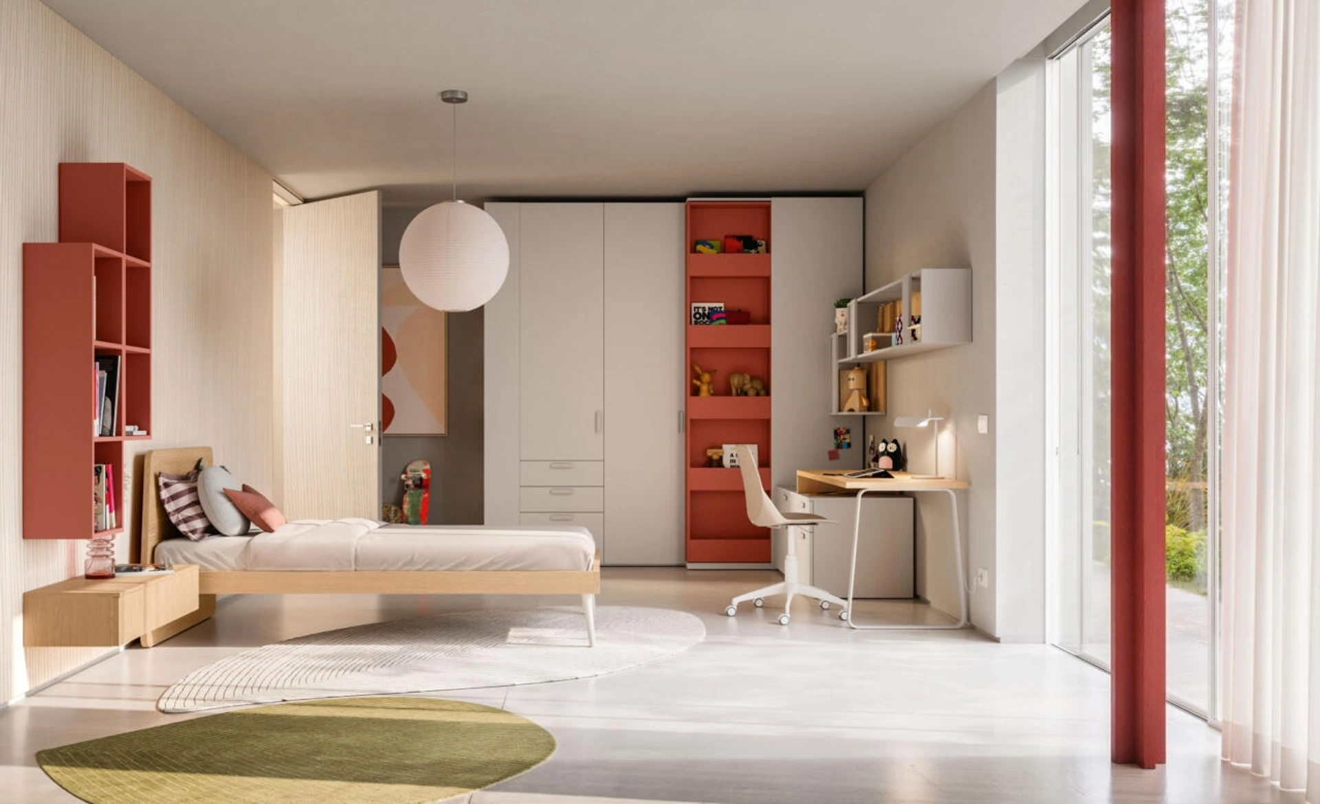 La Composizione Letto a Terra 22 di Mistral è personalizzabile o modulare?Sì, questa composizione è progettata per essere modulare e adattarsi alla crescita dei ragazzi. È possibile personalizzare le dimensioni standard e scegliere tra diverse finiture per integrarla al meglio nella cameretta.