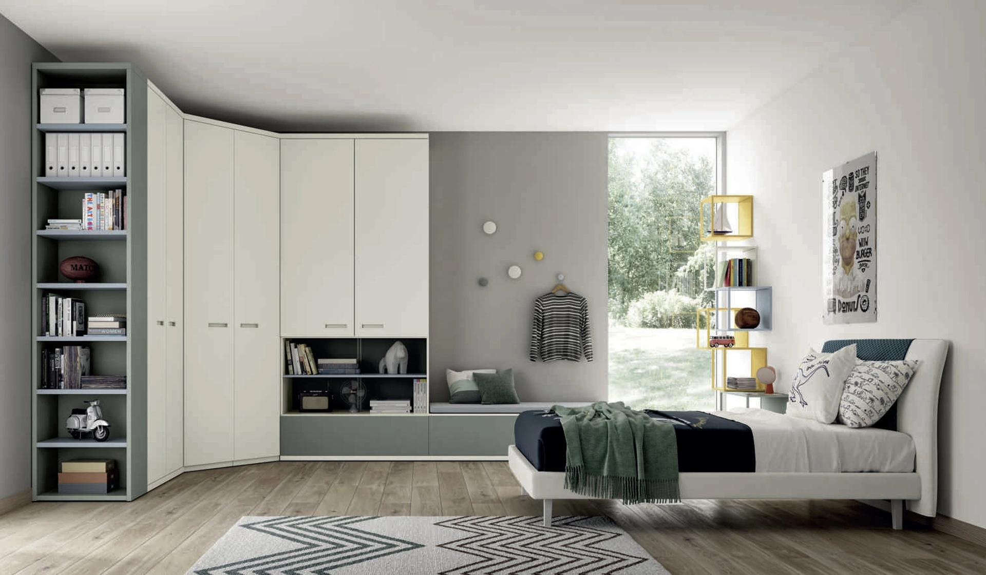 Modello Space 008 con finitura in laccato opaco pensata per ragazzi: scopri tutte le soluzioni componibili