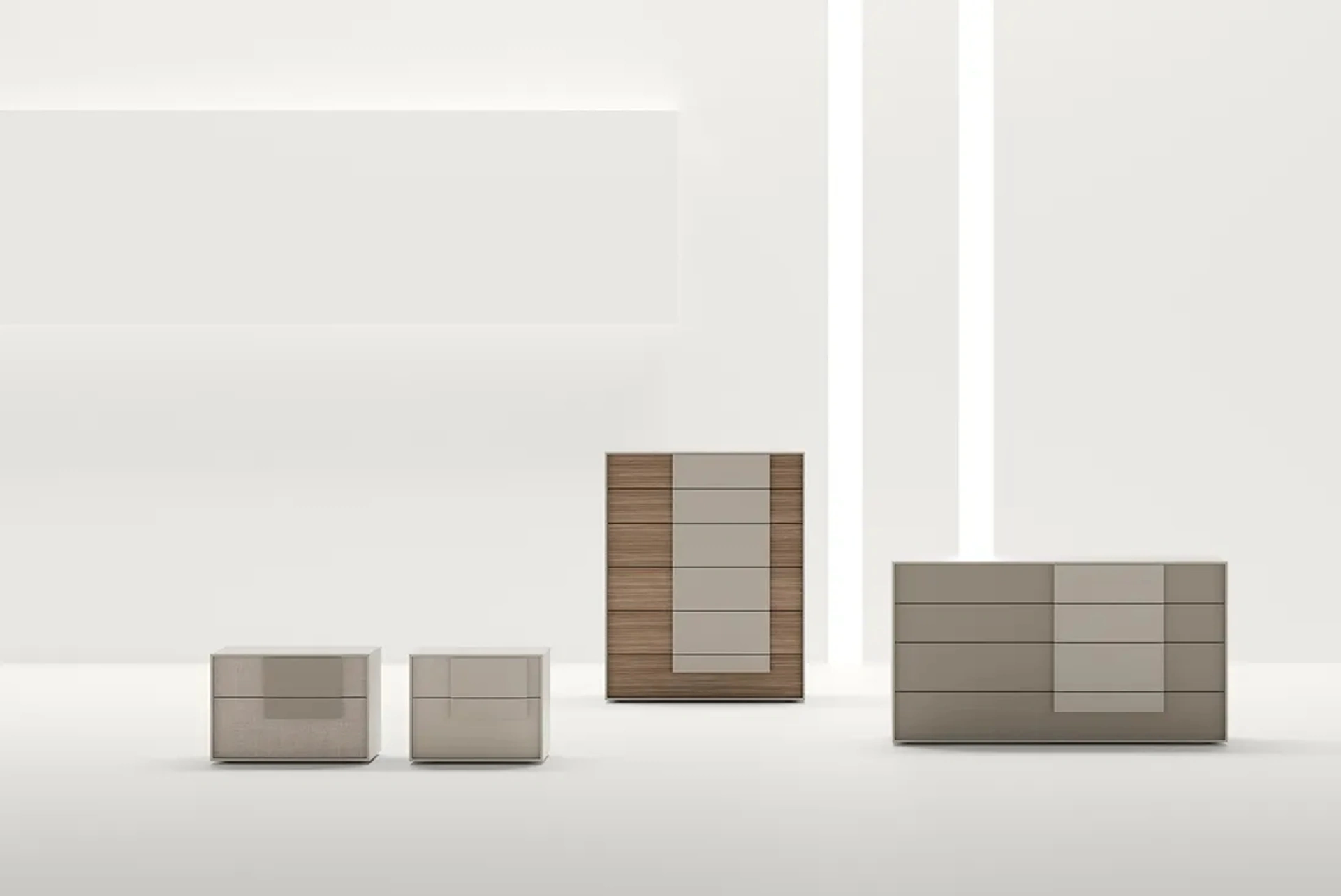 Posso personalizzare il Gruppo Notte Cube Adok?Certamente. Presso Rusconi Arredamenti puoi personalizzare le dimensioni standard degli arredi e visionare i campioni di materiali e finiture nella nostra materioteca per adattare il Gruppo Notte Cube al tuo stile.