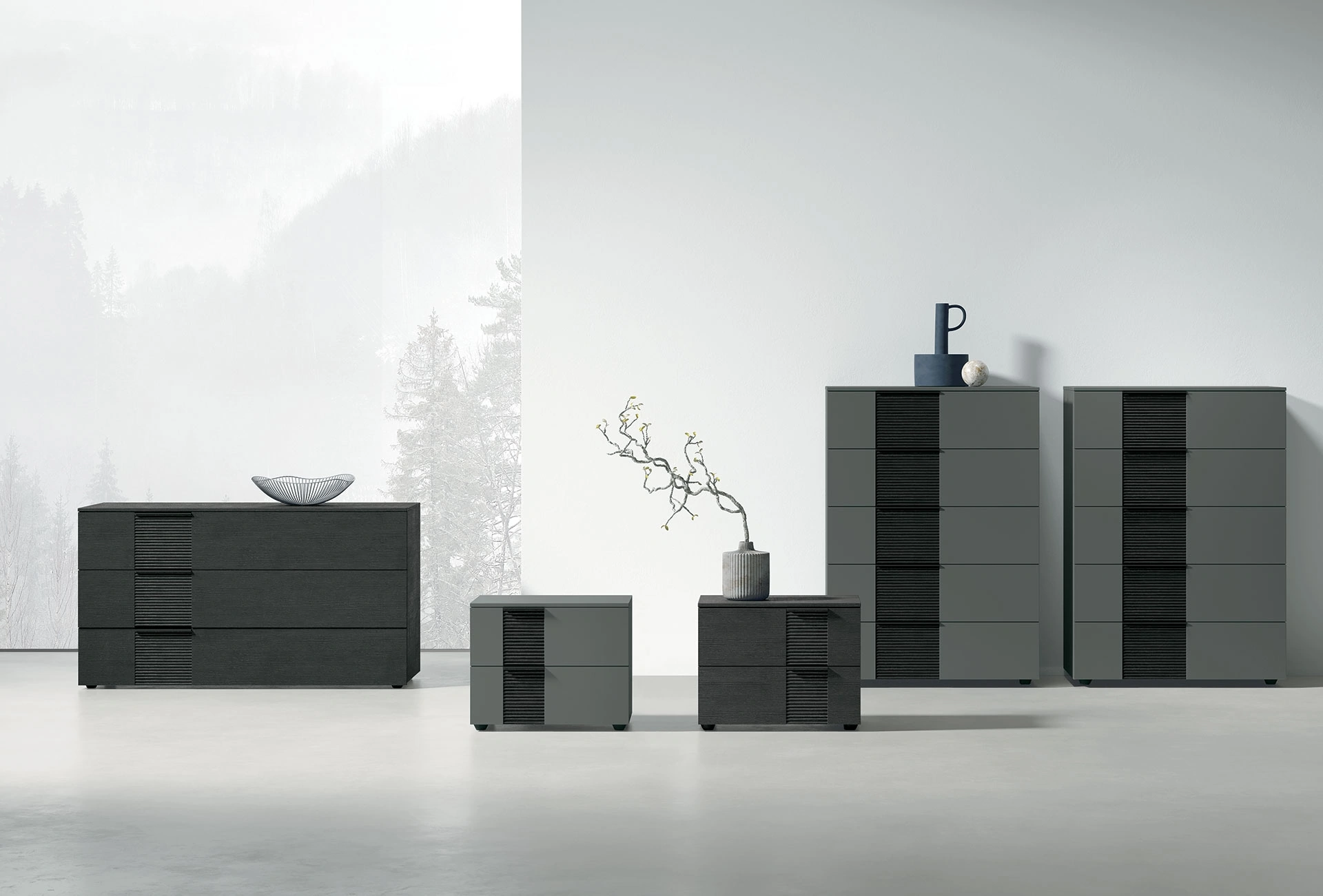 Il gruppo notte Bliss di Tomasella incarna un design essenziale e pulito, caratterizzato da un raffinato inserto in legno con finitura canetté. Questa distintiva lavorazione superficiale conferisce agli arredi una notevole profondità tattile e visiva, generando un sofisticato gioco di luci e ombre che valorizza l'atmosfera della camera da letto con un'eleganza intrinseca. La versatilità della collezione si manifesta nell'offerta di comodini con due cassetti, comò con tre cassetti e settimanali a cinque cassetti, fornendo soluzioni complete per ogni esigenza organizzativa. Il comodino Bliss, disponibile in configurazione destra o sinistra, è equipaggiato con una maniglia metallica ergonomica e discreta. La personalizzazione è ampia: struttura, top e frontali possono essere scelti in materico – con finiture che emulano legno, pietra, cemento o laccato – oppure in laccato, disponibile sia opaco che a poro aperto. L'elemento canetté può essere realizzato in rovere nelle varianti Moka, Sabbia, Cognac o Carbone, o in una vasta palette di laccati opachi. Le maniglie in metallo offrono finiture laccate opache o metallizzate in tre diverse tonalità. Progettato per offrire una fusione ottimale di estetica e praticità, questo sistema d'arredo è concepito per durare nel tempo e integrarsi armoniosamente.