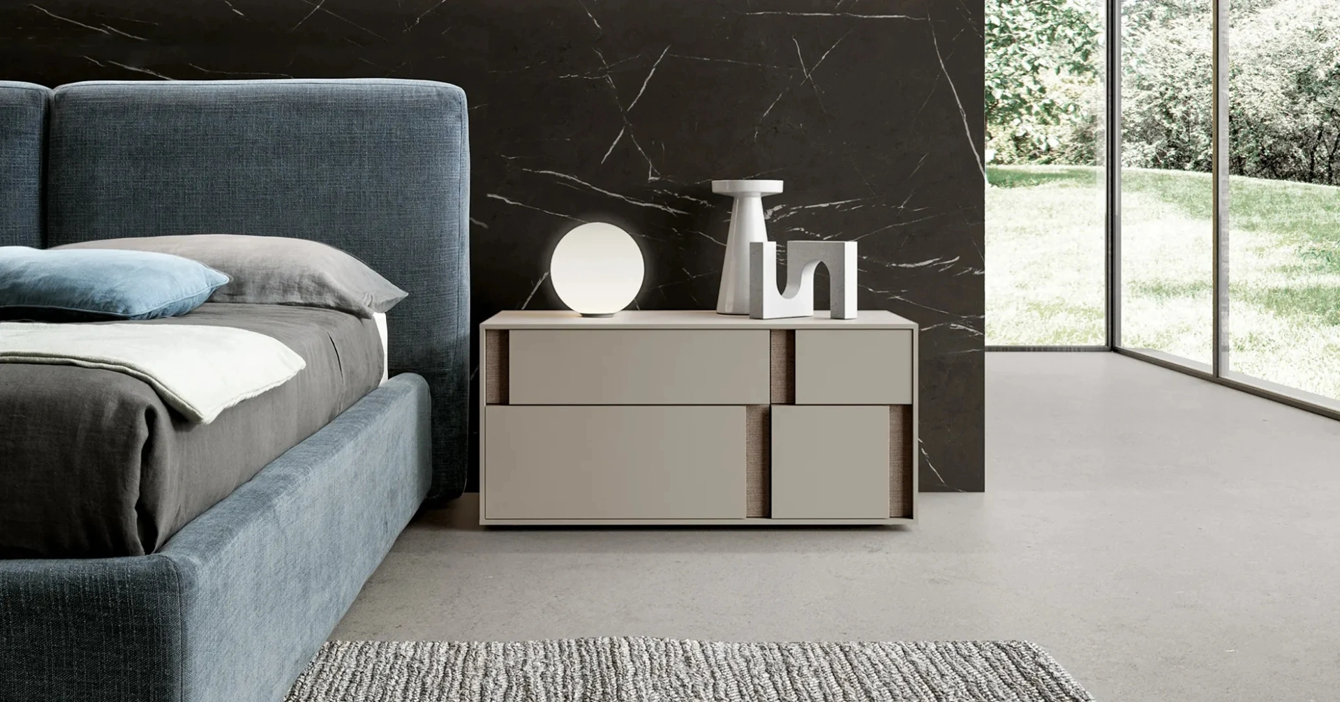 È possibile personalizzare il Comodino Loop e scegliere i materiali?Sì, presso Rusconi Arredamenti s.r.l. hai la possibilità di personalizzare le dimensioni del Comodino Loop. Inoltre, puoi visionare i campioni di materiali, come tessuti e legni, nella nostra materioteca per scegliere la finitura più adatta al tuo ambiente.