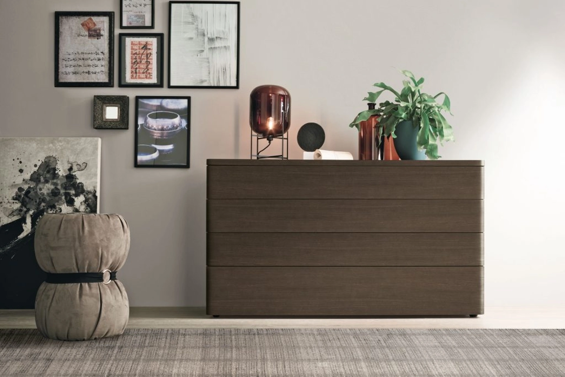 Il Gruppo Notte Dolcevita, firmato Tomasella, rappresenta una linea distintiva di arredi concepiti per la camera da letto, comprendente moduli contenitori come comò e comodini. La sua progettazione si basa su un'estetica rigorosa e contemporanea, caratterizzata da una purezza formale che trascende le tendenze effimere. Elementi distintivi sono gli angoli frontali delicatamente smussati, i quali mitigano la percezione volumetrica e conferiscono una leggerezza visiva all'insieme. Questa collezione incarna una sintesi equilibrata tra un'accurata ricerca geometrica e un'interpretazione del gusto moderno, focalizzandosi sull'ottimizzazione della funzionalità senza compromettere un'eleganza discreta. La flessibilità progettuale è garantita dalla sua capacità di integrarsi armonicamente in svariati contesti stilistici, grazie all'ampia proposta di finiture. Queste includono opzioni in Legno, Laccato opaco, Laccato lucido, Laccato poro aperto, Rovere carbone, Rovere cognac, Rovere sabbia, Rovere moka, che permettono una personalizzazione profonda. I singoli elementi possono essere configurati con o senza basamento, mentre l'adozione di piedini di ridotto spessore contribuisce a una silhouette complessiva snella e sofisticata. La scelta di questo prodotto Dolcevita Gruppo Notte garantisce un elevato standard di comfort e un'eccellenza costruttiva, supportata da una garanzia estesa sui componenti e sui processi produttivi.