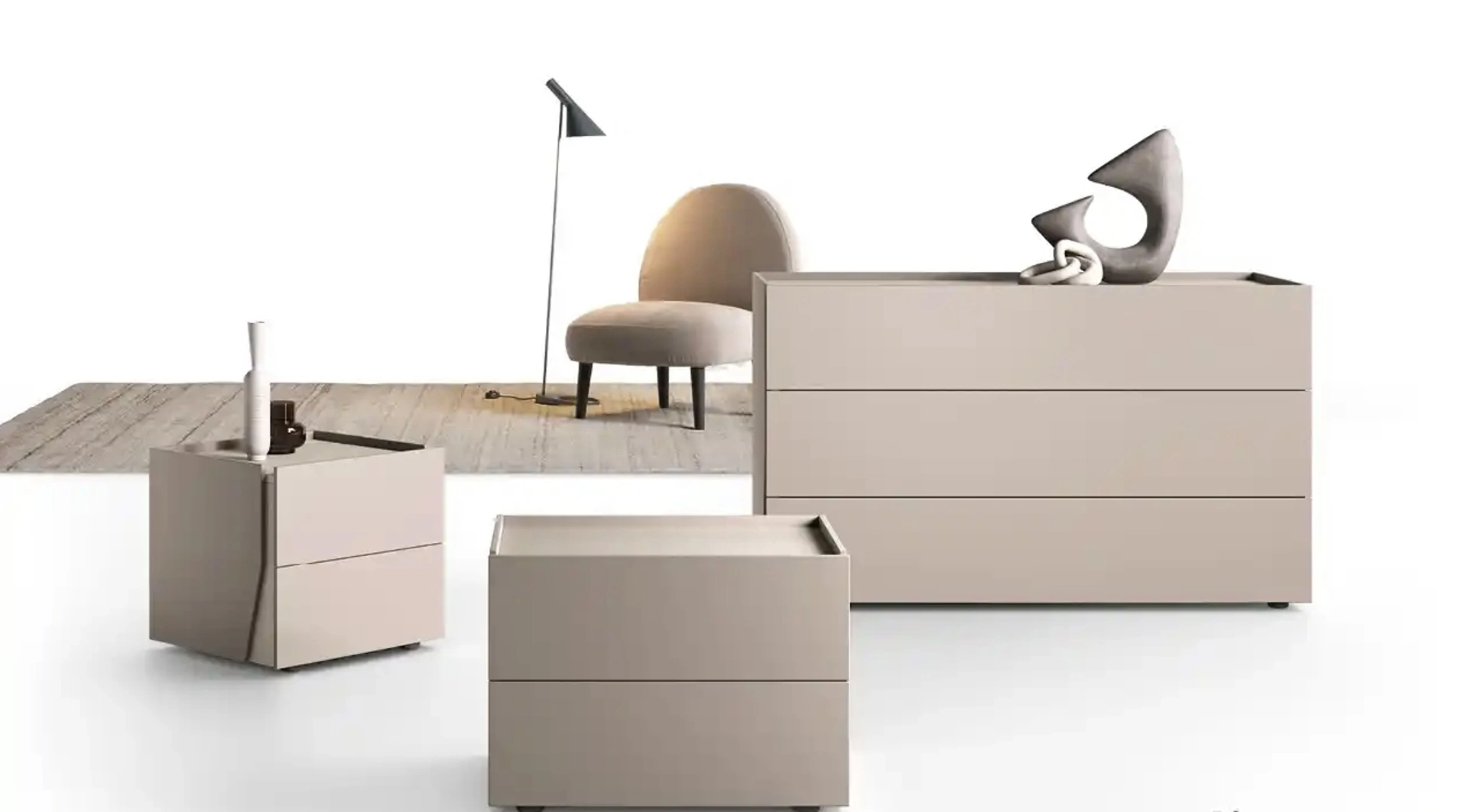 Valorizza la tua camera da letto: scopri i Comodini e comò moderni tra cui il modello Gruppo Notte Brezza in melaminico