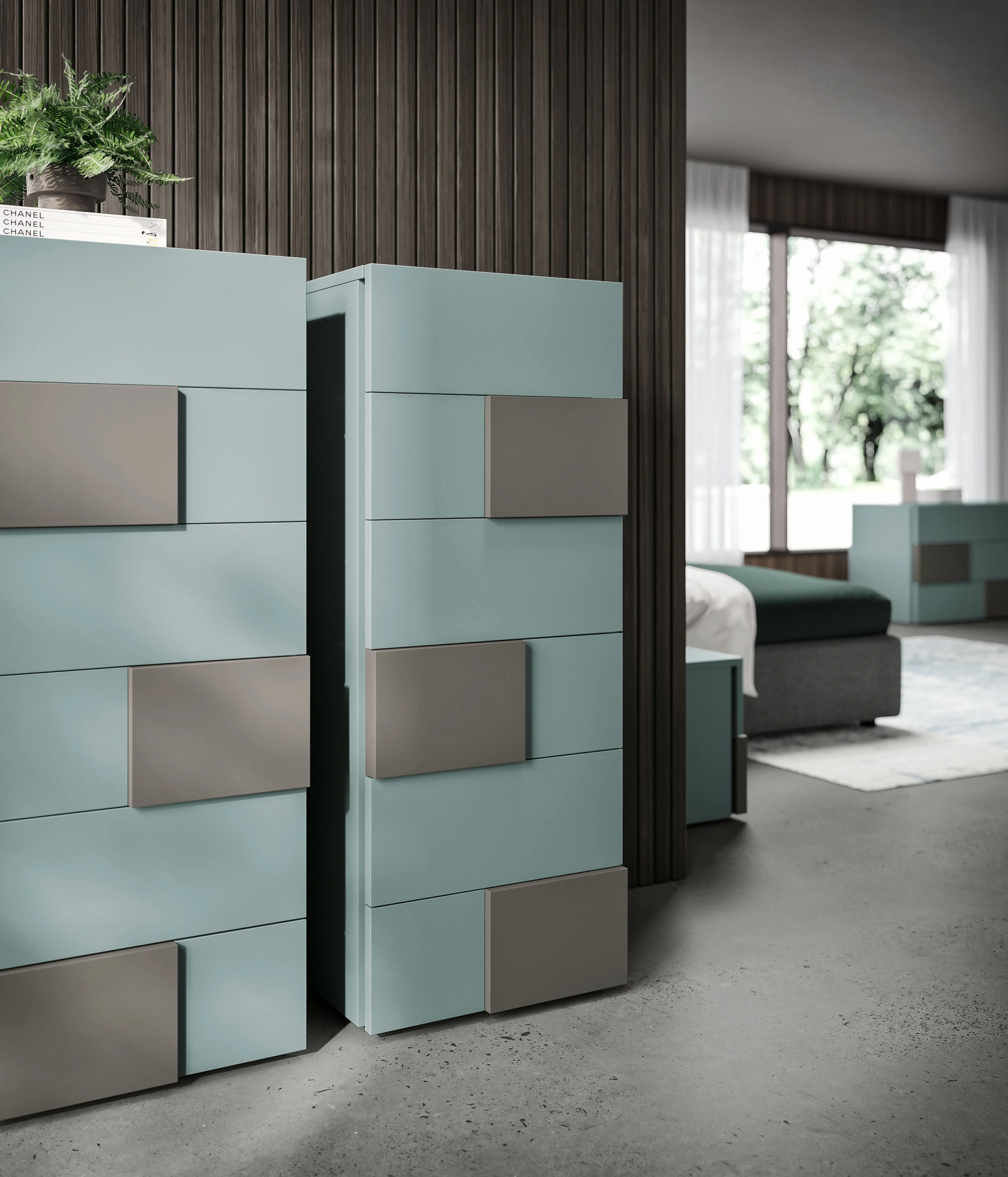 Quali opzioni di personalizzazione sono disponibili per i comodini Gruppo Notte Domino?È possibile personalizzare le dimensioni standard degli arredi e visionare campioni di materiali come tessuti, legni e laccati. La nostra materioteca ti guiderà nella scelta per i tuoi comodini.