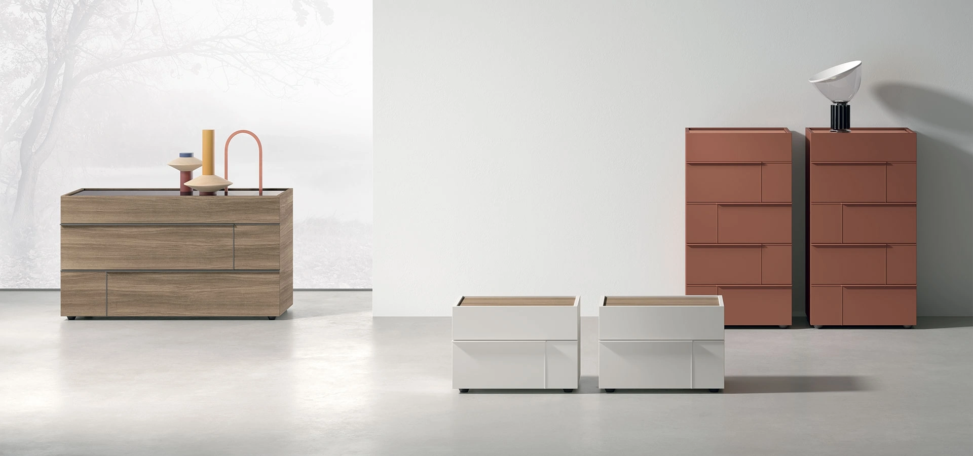 Comodini e gruppi notte in laccato opaco per ambienti design: scopri il modello Hashtag Gruppo Notte mostrato in foto