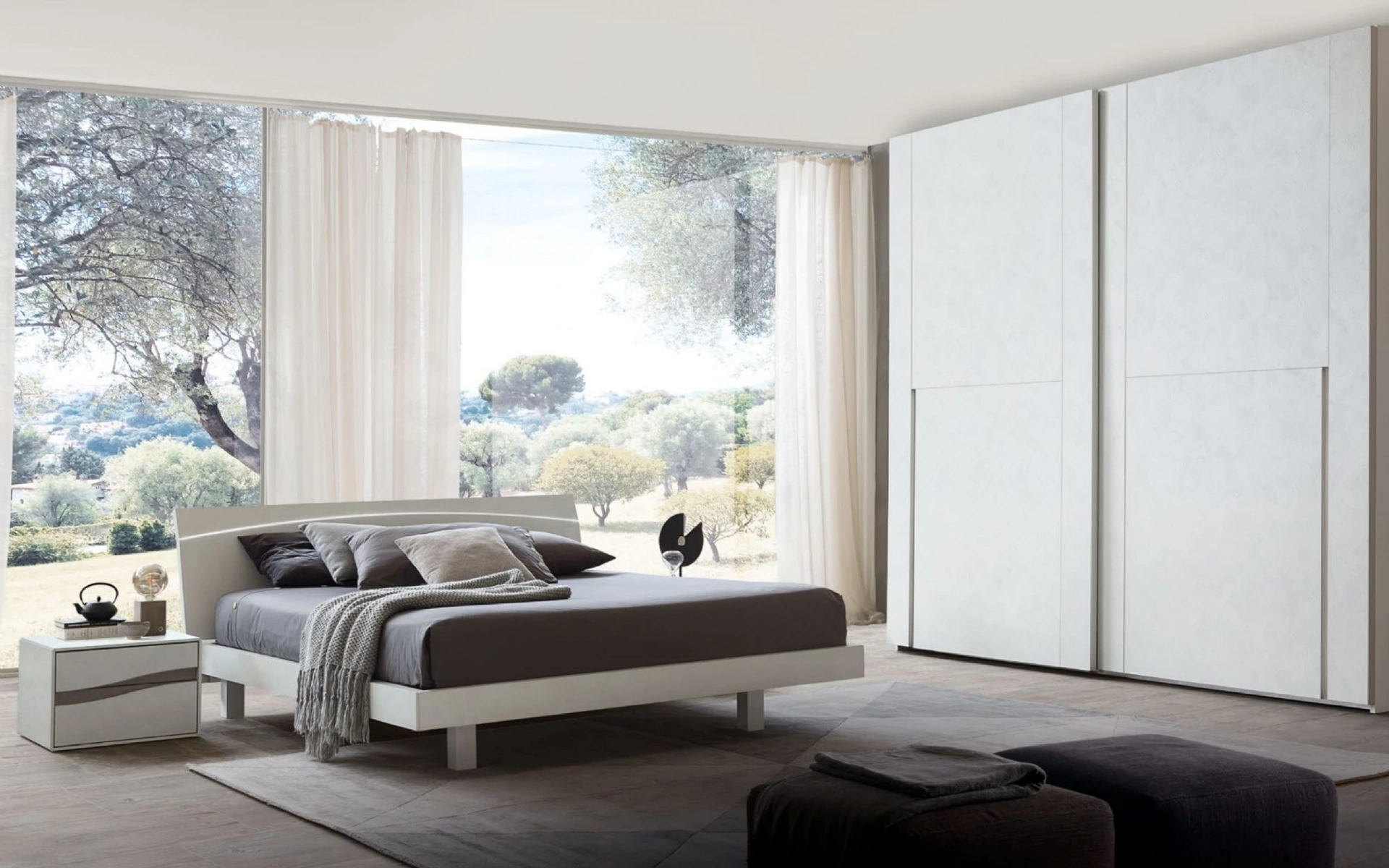 Comodini e gruppi notte in melaminico per ambienti moderni: scopri il modello Infinity Onda presente in foto