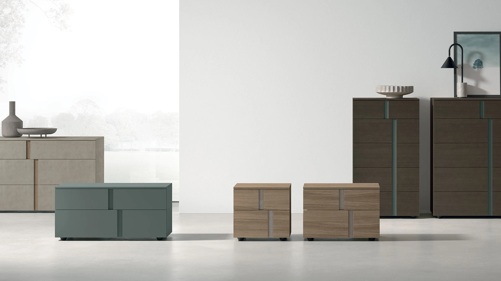 Quali materiali e finiture sono disponibili per i comodini del Gruppo Notte Athena?Il Gruppo Notte Athena di Tomasella è tipicamente disponibile in diverse finiture, come laccato o essenze legno. Presso il nostro negozio, puoi visionare la materioteca per scegliere la soluzione perfetta per la tua camera da letto.