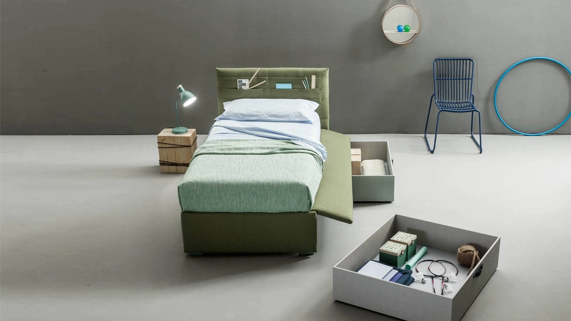 Il Letto singolo Pocket di Bside completa la stanza dei più piccoli garantendo il riposo migliore per i tuoi bambini
