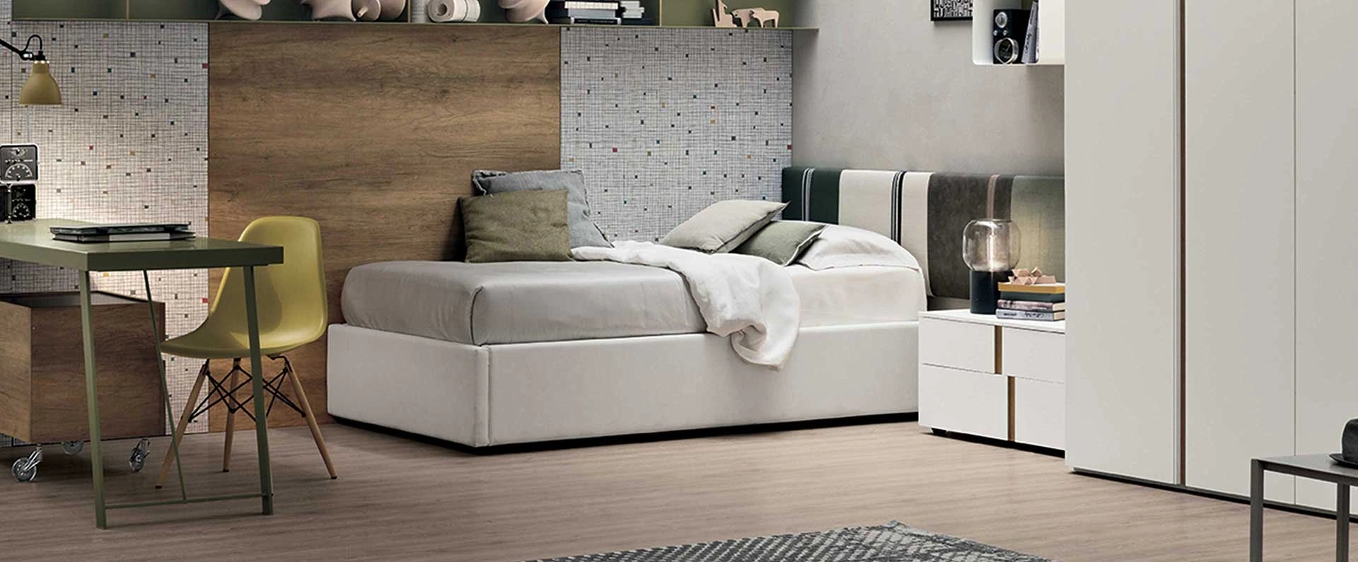 Una proposta che osserva le direttive di sicurezza indispensabili per organizzare il regno dei giovani. Ti serve un letto singolo Tomasella per completare la cameretta? Ti presentiamo il Letto Singolo Diagonal Testiera di Tomasella che è appartenente alla nostra collezione di letti imbottiti del brand. La cameretta dei più piccoli è necessario che preveda tutti gli arredi per garantire un locale accogliente, in cui trovano posto i letti classici come questo. Scopri di più sul modello in tessuto nell'immagine: contattaci per qualsiasi specifica compilando il form qui sotto.