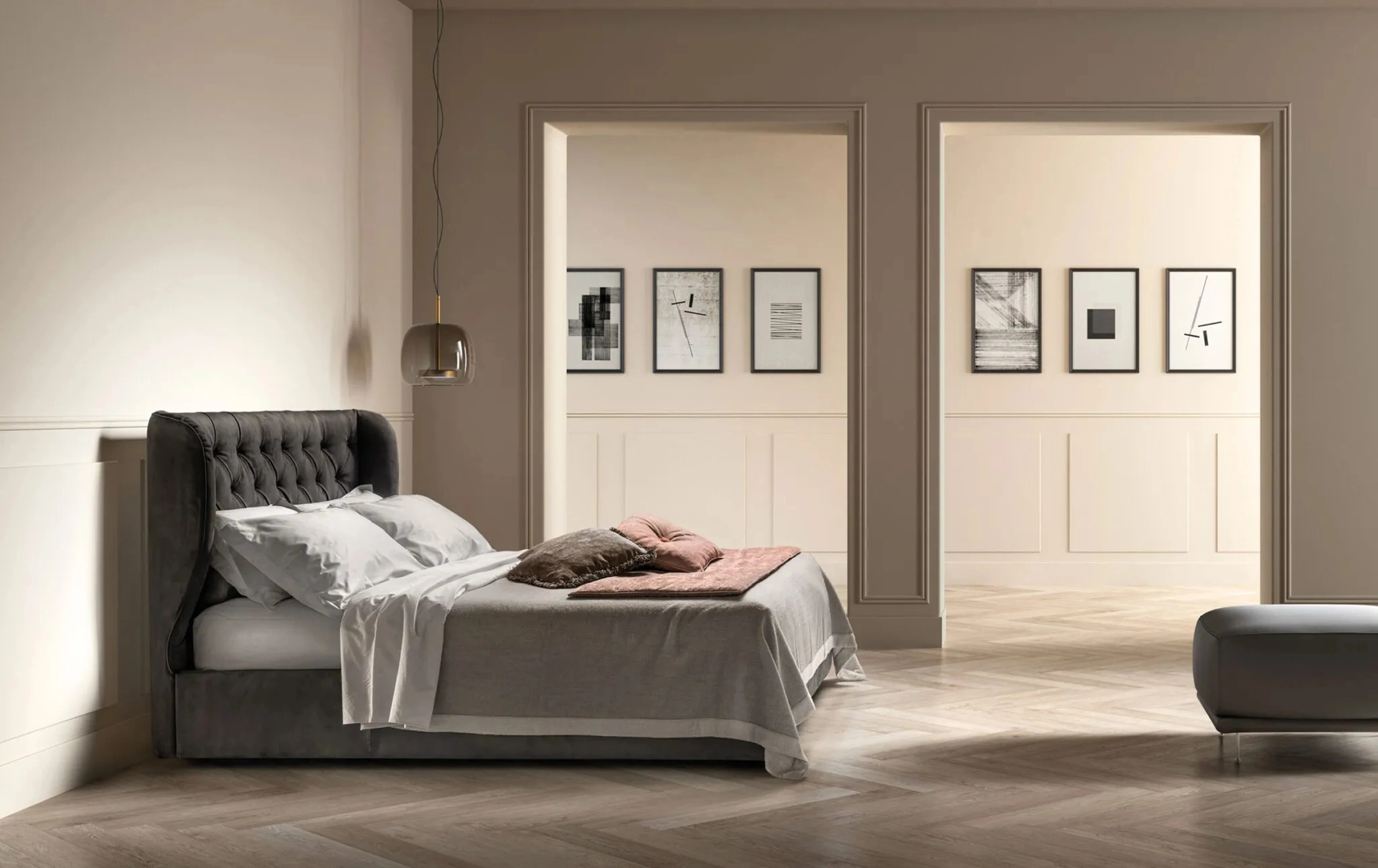 Scegli cromie e finiture e realizza il tuo progetto d’arredo nella zona notte, progettandola proprio come l'hai sempre sognata. I Letti matrimoniali imbottiti dell'azienda, specialista nella realizzazione di Arredamento Casa per la zona del riposo, vengono progettati per essere abbinati a mobili ed elementi accessori di ogni tipo, come armadi e comò, abat jour e piantane. Se desideri una soluzione in pelle, il modello presente in foto è contraddistinto da materiali di qualità e linee decise, che invitano a trascorrere un riposo tranquillo e ristoratore. Il Letto con testiera Gem di Bside crea uno spazio intimo e confortevole in ogni zona notte, assicurandoti il riposo migliore e uno stile unico. Durante la scelta della giusta tipologia di letto, valuta con cura le sue misure, i materiali, la forma e il suo stile rispetto ai restanti pezzi d'arredo.