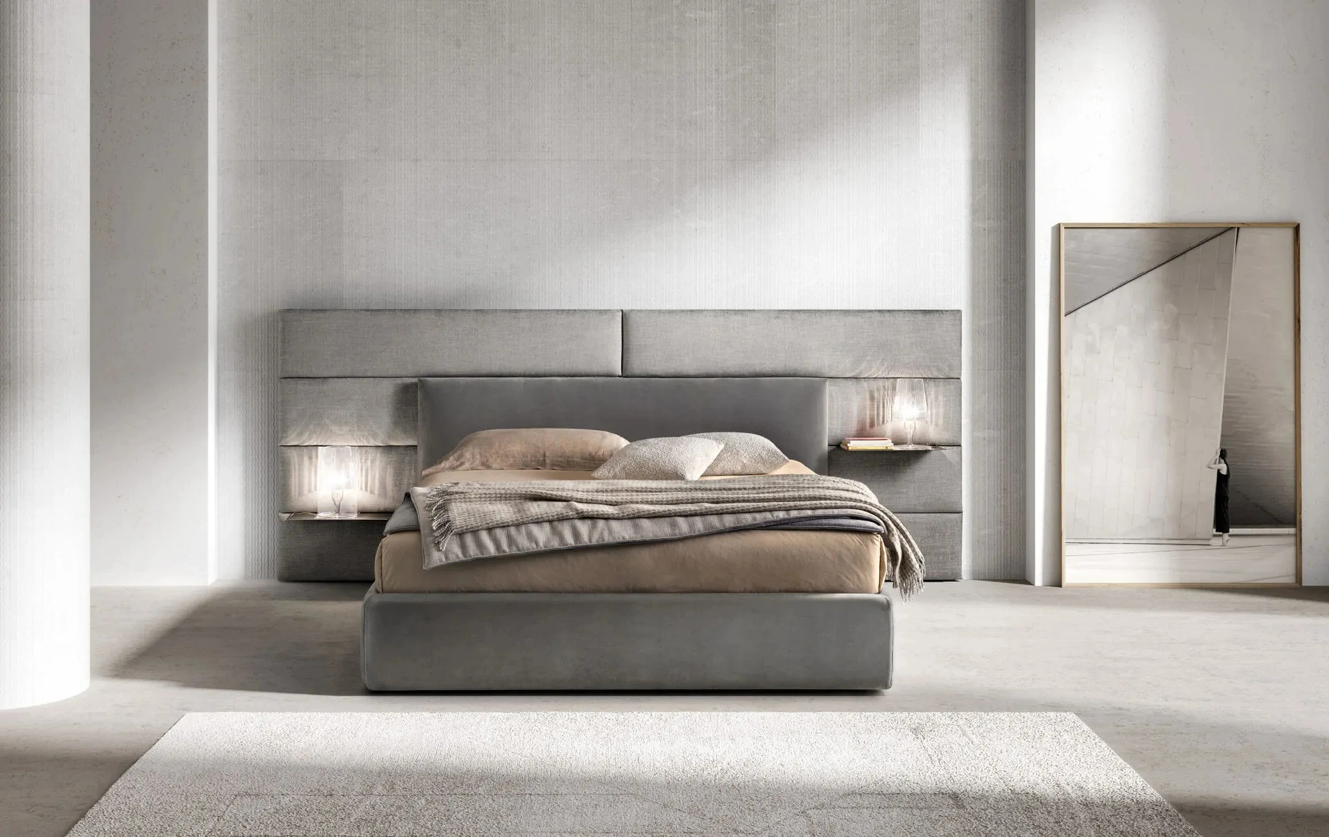 Il Letto con testiera Match Programm di Bside ottimizza la zona notte assicurandoti il sonno più profondo e un'accurata ricerca estetica