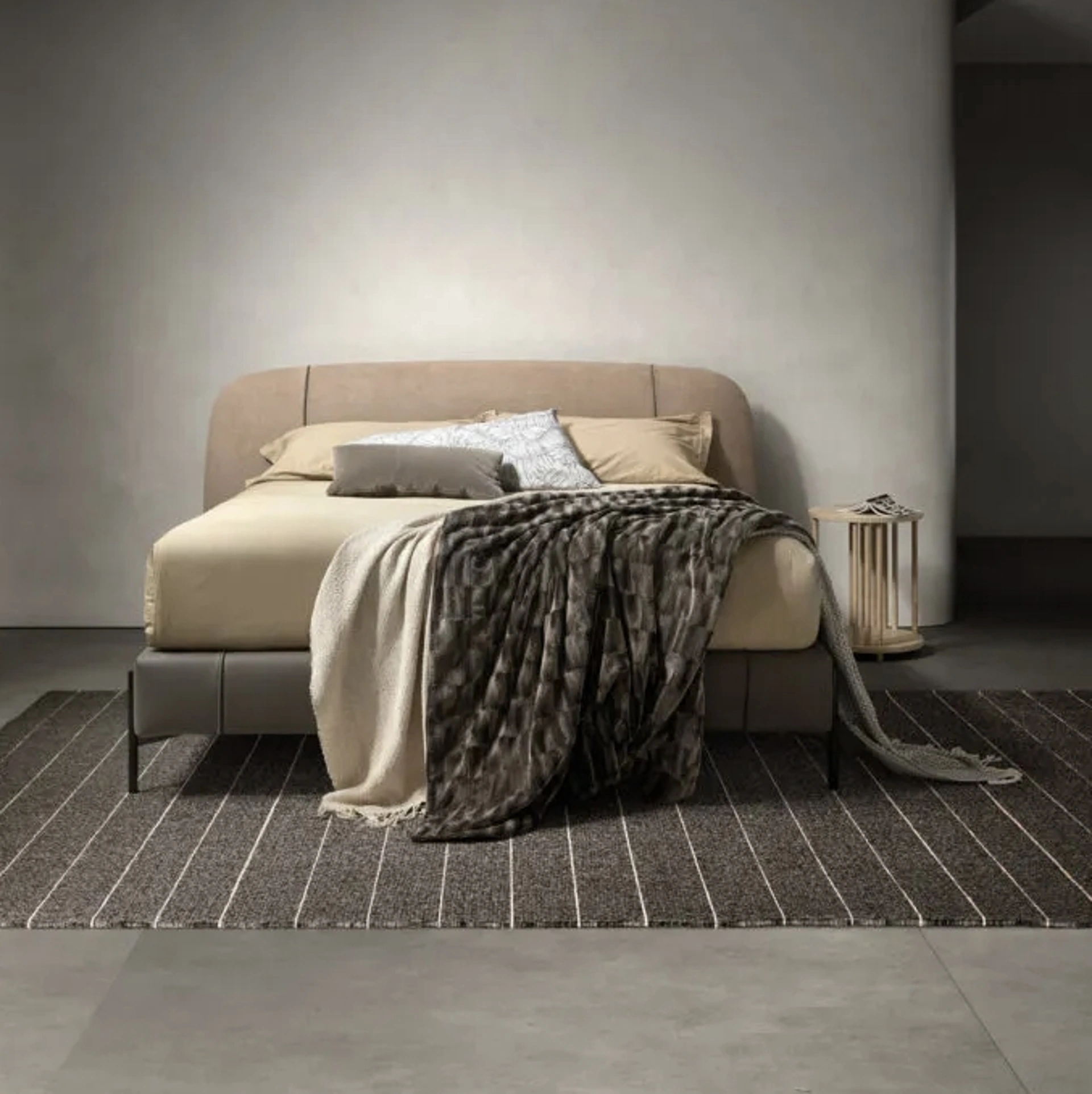 Durata dei materiali e grande comfort sono gli ingredienti che distinguono tutti i prodotti dell'azienda, tra cui anche il letto in tessuto nella fotografia. Se desideri creare un'ambientazione intima e rasserenante, il modello presente in foto fa al caso tuo: nella stanza del riposo dovrai creare un'ambientazione rasserenante, per farti ritemprare le energie psichiche e fisiche ogni notte. Con il Letto con testiera Set di Bside del noto e rinomato marchio, specialista del settore, potrai impreziosire la tua zona notte assicurandoti comfort, praticità e un design pulito. Se desideri allestire spazi moderni, ti aspettiamo per presentarti la nostra design di Arredamento Casa per realizzare il tuo concept su misura. Scopri in negozio una ricca gamma di Letti imbottiti, mobili ed elementi accessori per la zona del riposo delle migliori marche.