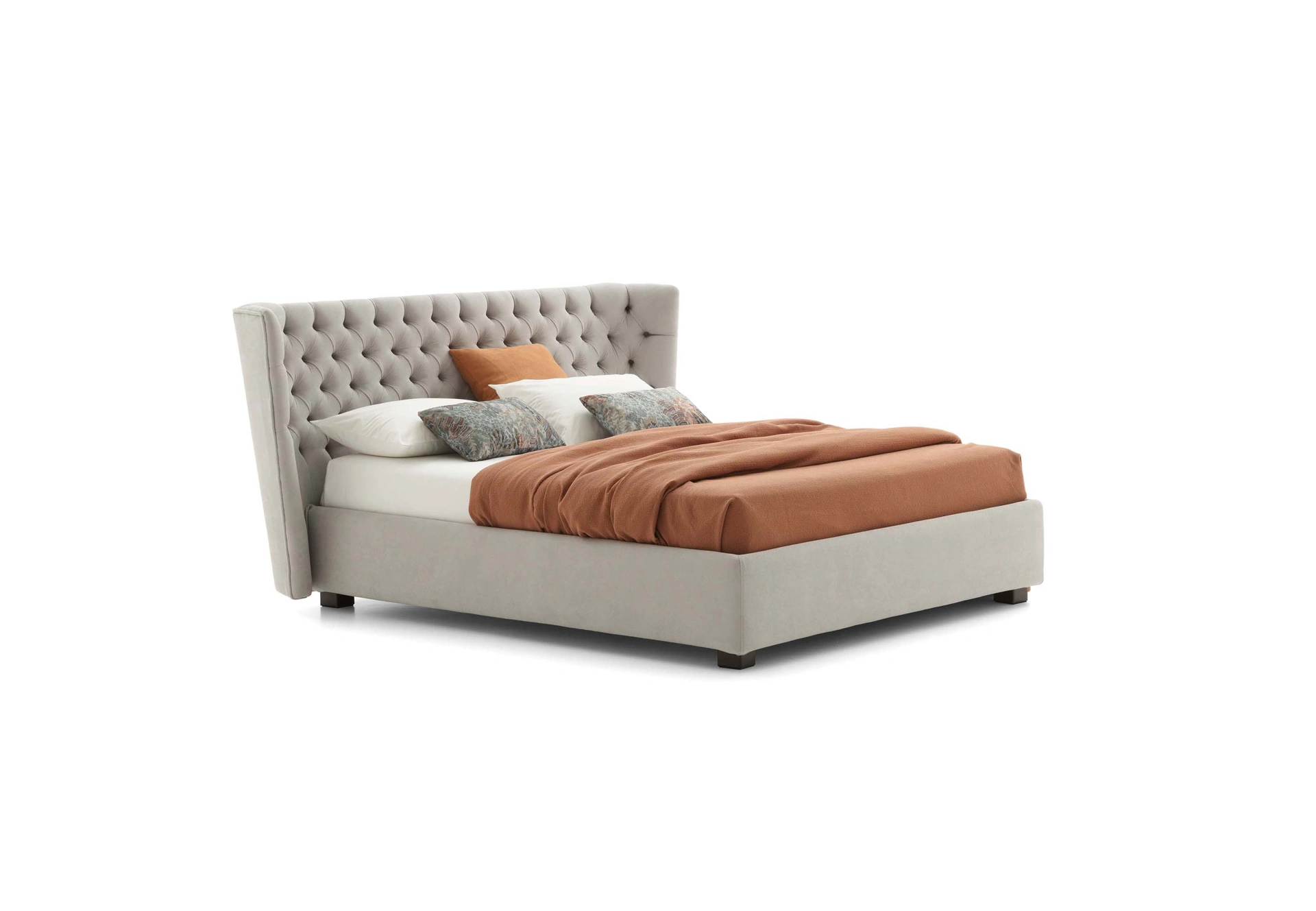 Quali opzioni di personalizzazione sono disponibili per il letto Caravaggio?Il letto Caravaggio può essere personalizzato nelle dimensioni standard e nella scelta dei materiali. Puoi visionare i campioni di tessuti e finiture nella nostra materioteca per un progetto su misura.