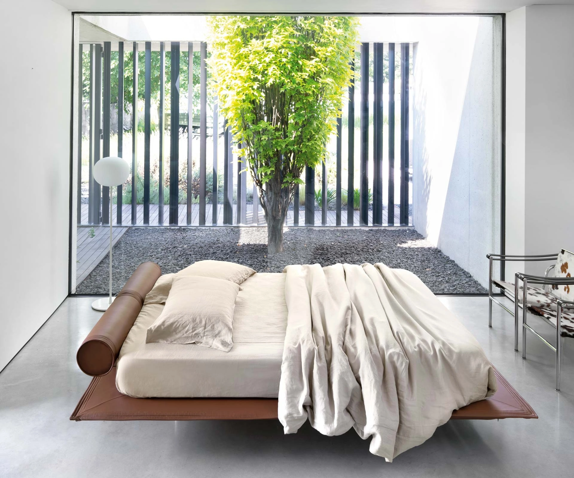 Il letto Flamingo, ideato da Studio V7 per il brand Noctis, si configura come un elemento d'arredo distintivo, caratterizzato da un'estetica di raffinata leggerezza. La sua base estremamente sottile e i piedini discretamente arretrati generano un suggestivo effetto di sospensione visiva. La versione base è rivestita in tessuto Nord Wool, con dettagli di cuciture a tripla impuntura che ne evidenziano la meticolosa realizzazione. Per chi predilige soluzioni di maggiore pregio, è disponibile anche una finitura in pelle. Il modello specifico 'Flamingo Net' si distingue per l'impiego esclusivo di cuoio naturale, sottoposto a un processo di invecchiamento artigianale che ne esalta le texture e il carattere, offerto nelle colorazioni nero e testa di moro. La testata è ingegnerizzata con due cuscini a rullo, anch'essi in pelle, dotati di meccanismo di regolazione tramite pistoni a gas con sistema push-up, offrendo così un adattamento personalizzato per il massimo comfort. L'eccellenza della manifattura è tangibile nella precisione delle trame e nell'attenzione ai dettagli costruttivi. La durabilità strutturale e l'eleganza estetica sono prerogative fondamentali, garantendo un'esperienza d'uso prolungata e pienamente soddisfacente.