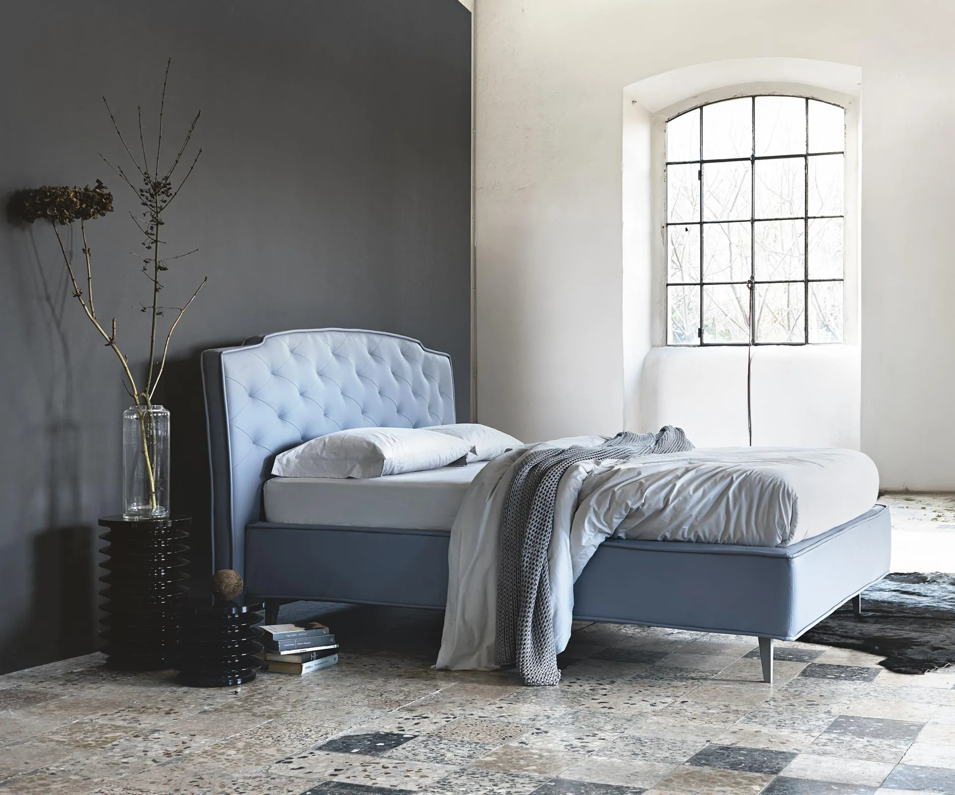 Se desideri una soluzione in tessuto, il modello visibile in foto è connotato da materiali di qualità e forme decise, che invitano a trascorrere un sonno profondo e ristoratore. Scegli cromie e texture e realizza il tuo progetto d’arredo nella camera, progettandola proprio come l'avevi sognata. Durante l'acquisto di un buon modello di letto, valuta con cura le sue dimensioni, i materiali, la forma e il suo stile rispetto al resto degli arredi. I Letti matrimoniali imbottiti della firma, leader nella realizzazione di Arredamento Casa per la zona notte, vengono progettati per essere abbinati a mobili e oggetti accessori di ogni tipo, come armadi e comò, abat jour e piantane. Il Letto Frank di Noctis crea uno spazio intimo e confortevole in ogni camera, garantendoti il riposo migliore e un design unico.