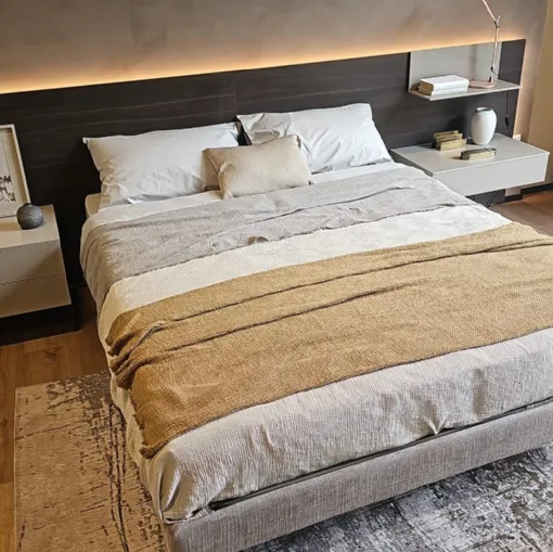Letto Hugh One con testiera in Noce di Noctis