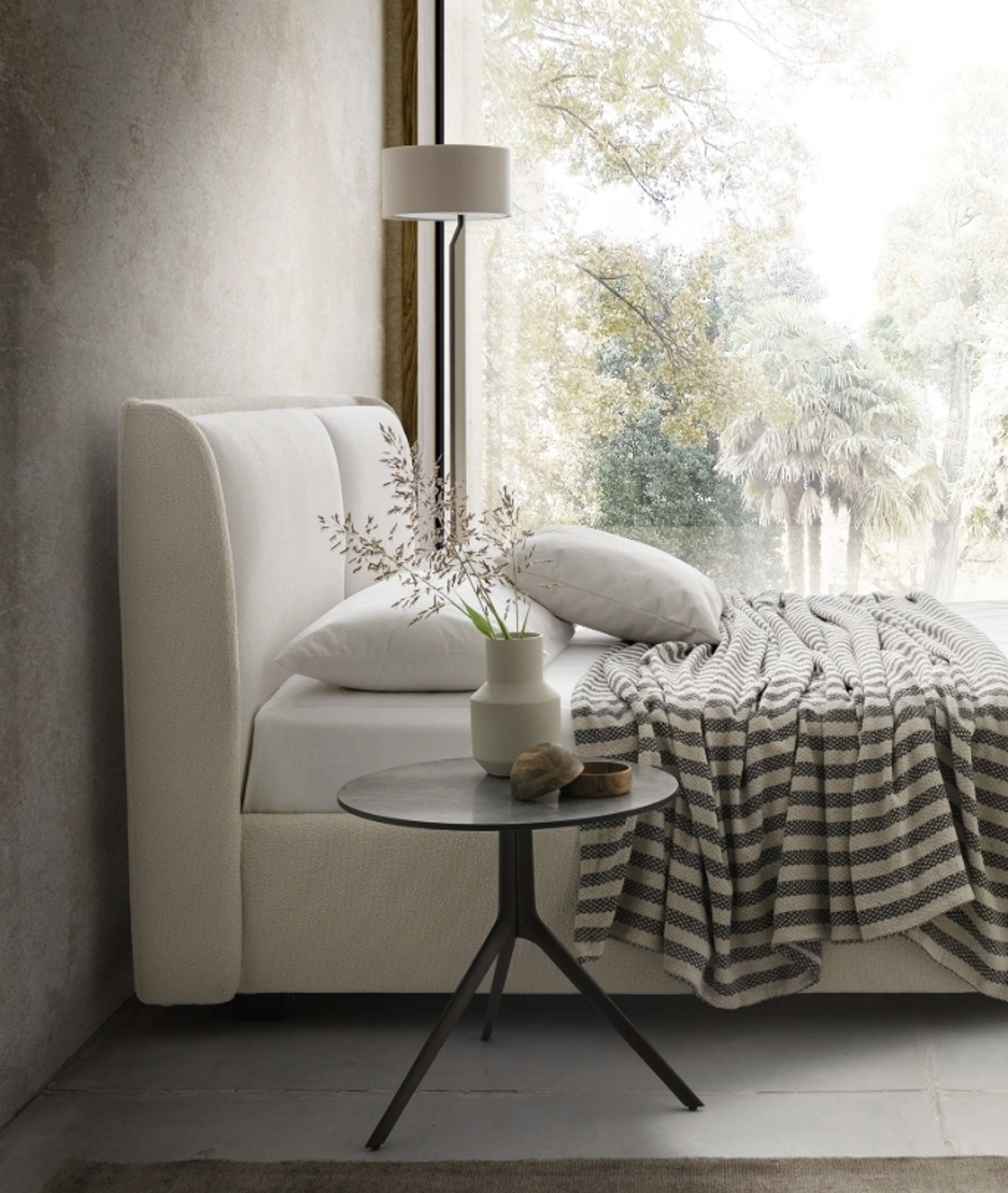 Il letto Windsor di LeComfort, un esempio di design contemporaneo, si distingue per la sua struttura imbottita e l'estetica moderna. Offre una personalizzazione elevata grazie alla disponibilità di rivestimenti in tessuto o texil, interamente sfoderabili e lavabili, garantendo praticità e igiene. La sua testiera, ispirata all'inventiva dello stile Industrial, è concepita per avvolgere la base, creando un robusto ed elegante guscio che accoglie due cuscini ampi e distinti. Questa soluzione stilistica introduce un dinamismo ritmico che supera la linearità convenzionale. I componenti principali come testiera, fasce e pediera sono fabbricati con poliuretano espanso indeformabile di 30 kg/m³ di densità, rifinito con un rivestimento in resinato per una maggiore durabilità e resistenza. L'accurata selezione dei materiali e le finiture di alta qualità sono elementi distintivi che garantiscono prestazioni e durabilità nel tempo per ogni componente del prodotto.