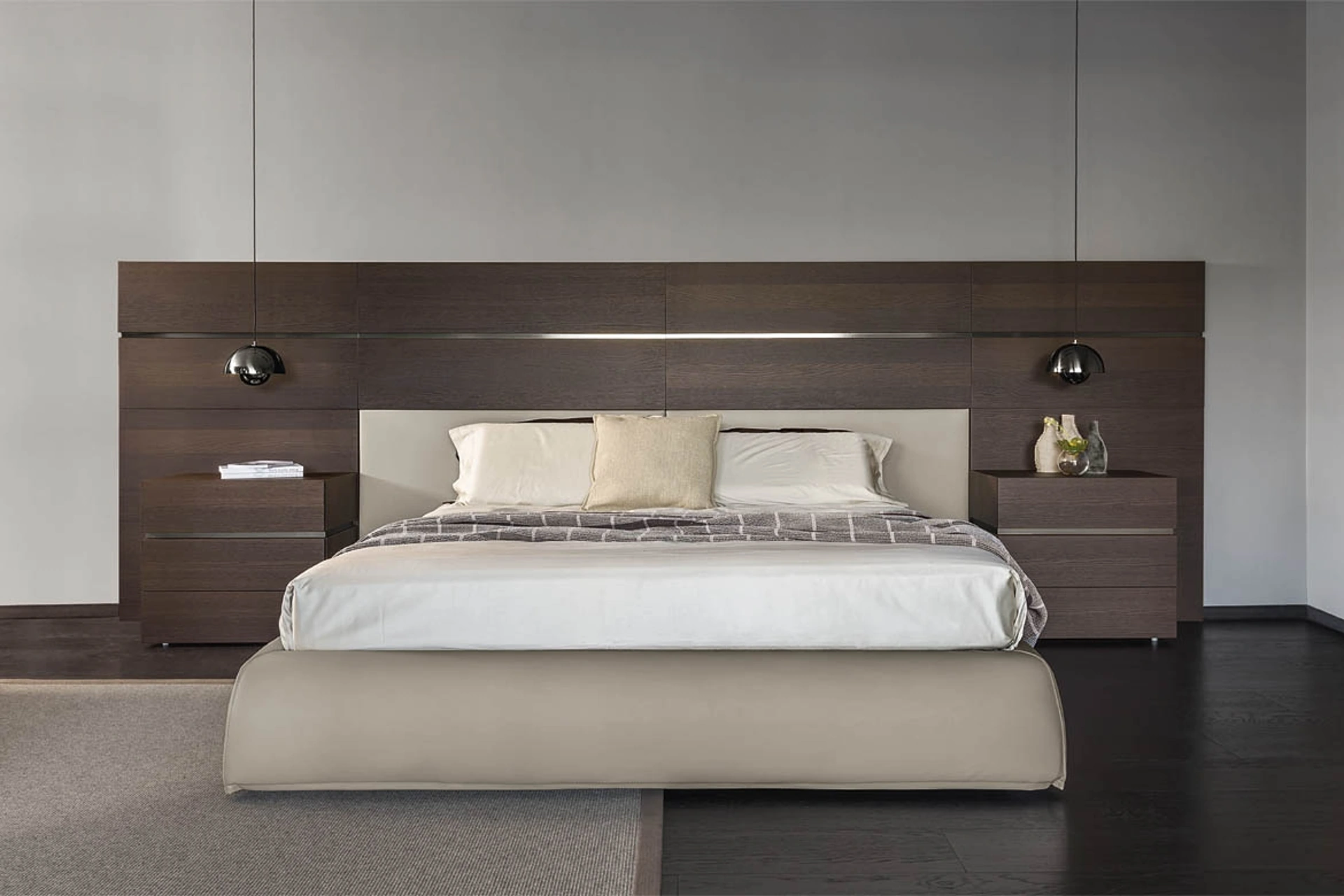 Letto Sommier in pelle con Boiserie in Legno di Pianca