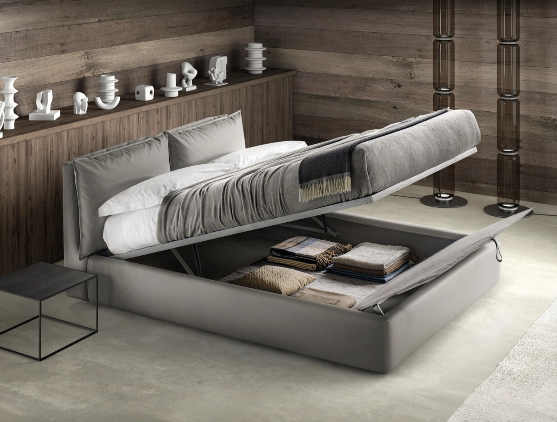 Scegli tonalità e finiture e realizza il tuo concept d’arredo nella camera da letto, progettandola proprio come l'hai sempre sognata. I Letti matrimoniali con contenitore della firma, specialista nella produzione di Arredamento Casa per la camera da letto, sono progettati per essere abbinati a mobili e oggetti accessori di ogni genere, come armadi e comodini, lampade e piantane. Se vuoi una soluzione in tessuto, il modello visibile in foto è connotato da materiali di qualità e forme decise, che invitano a trascorrere un riposo completo e rigenerante. Durante l'acquisto di un buon modello di letto, valuta con attenzione le sue misure, le finiture, la forma e il suo stile rispetto al resto degli arredi. Il Letto con contenitore Quiet di Bside crea uno spazio familiare e confortevole in ogni camera da letto, garantendoti il relax totale e uno stile unico.