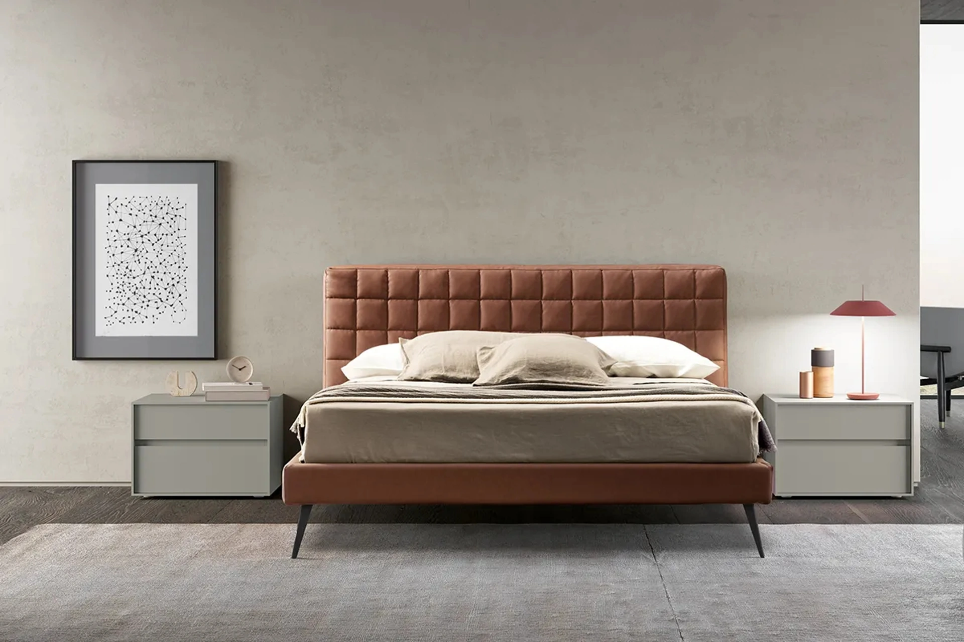 Durante la scelta della giusta tipologia di letto, valuta attentamente le sue dimensioni, le finiture, la forma e il suo stile rispetto al resto dell'arredo. Se vuoi una soluzione in ecopelle, il modello visibile in foto è connotato da materiali durevoli e forme decise, che invitano a goderti un sonno sereno e rigenerante. Il Letto Rubik in Ecopelle di Adok ricrea uno spazio accogliente e confortevole in ogni camera da letto, garantendoti il relax totale e un design unico. Scegli cromie e texture e realizza il tuo concept d’arredo nella camera da letto, progettandola proprio come l'avevi sognata. I Letti matrimoniali imbottiti del marchio, specialista nella produzione di Arredamento Casa per la zona del riposo, sono progettati per essere abbinati a mobili e oggetti accessori di ogni genere, come armadi e comodini, lampade e piantane.