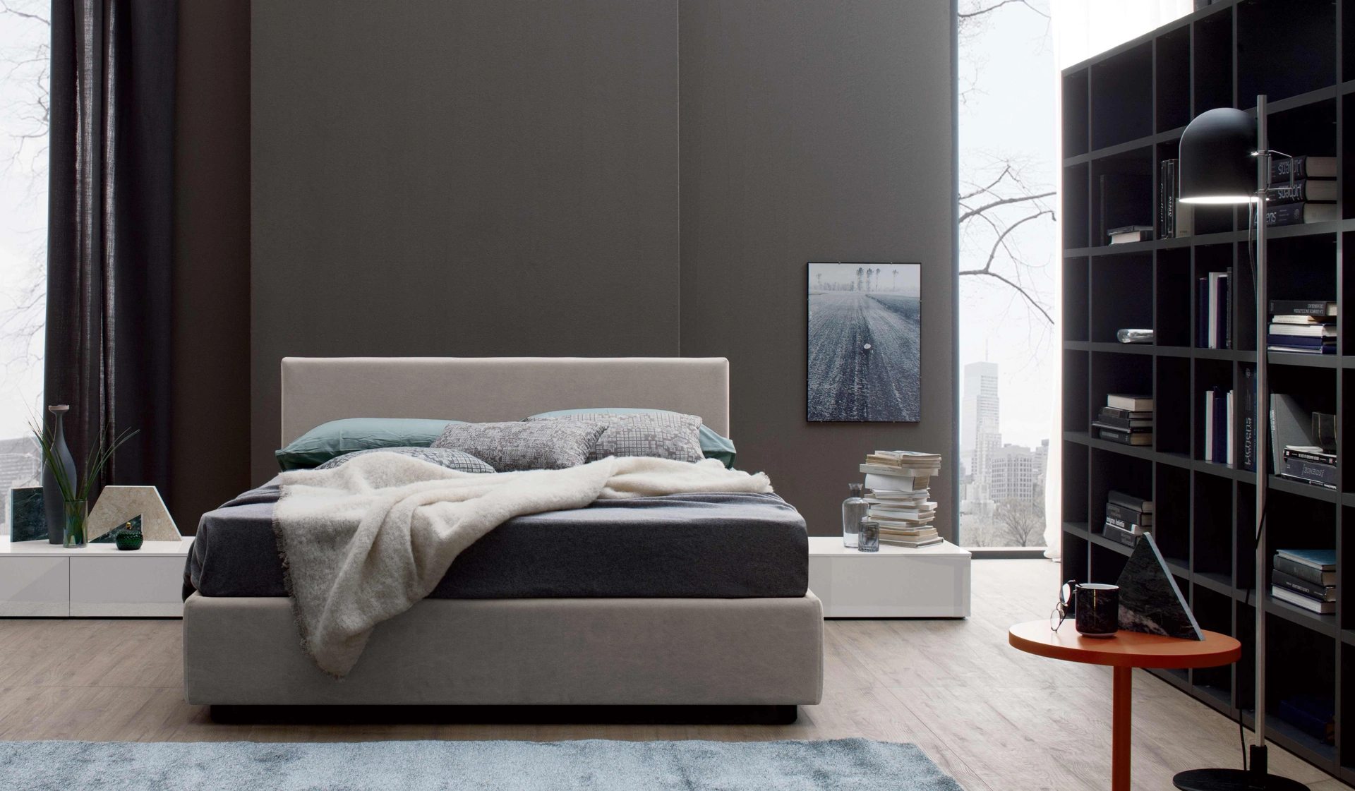 Il Letto in tessuto New Life di Spagnol Mobili ottimizza la camera assicurandoti il relax totale e un'accurata ricerca estetica