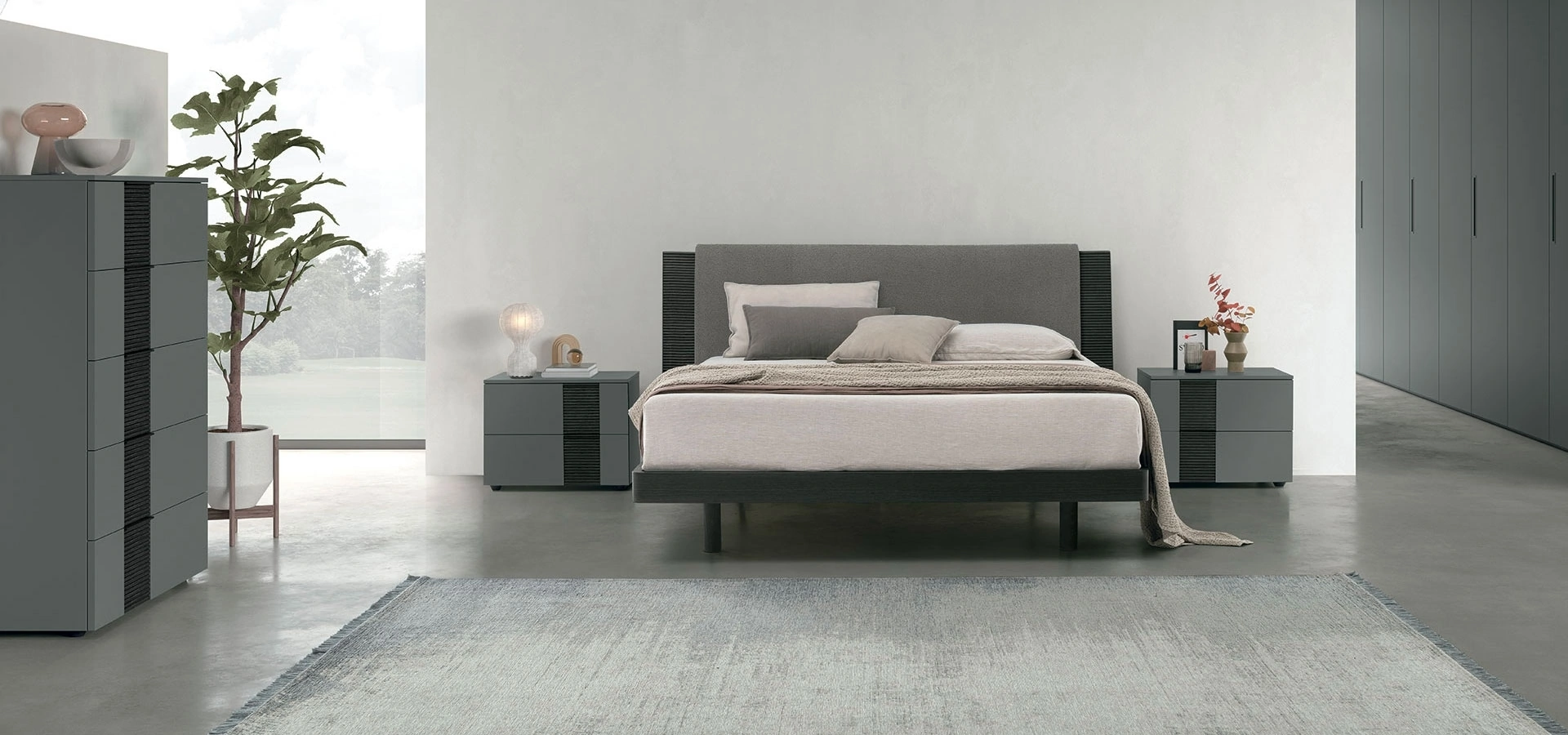 | Materiale: | Materico rovere moka, Legno rovere moka effetto canettè, Pannello imbottito (tessuti e colori vari), Pelle nabuk, Rovere carbone |