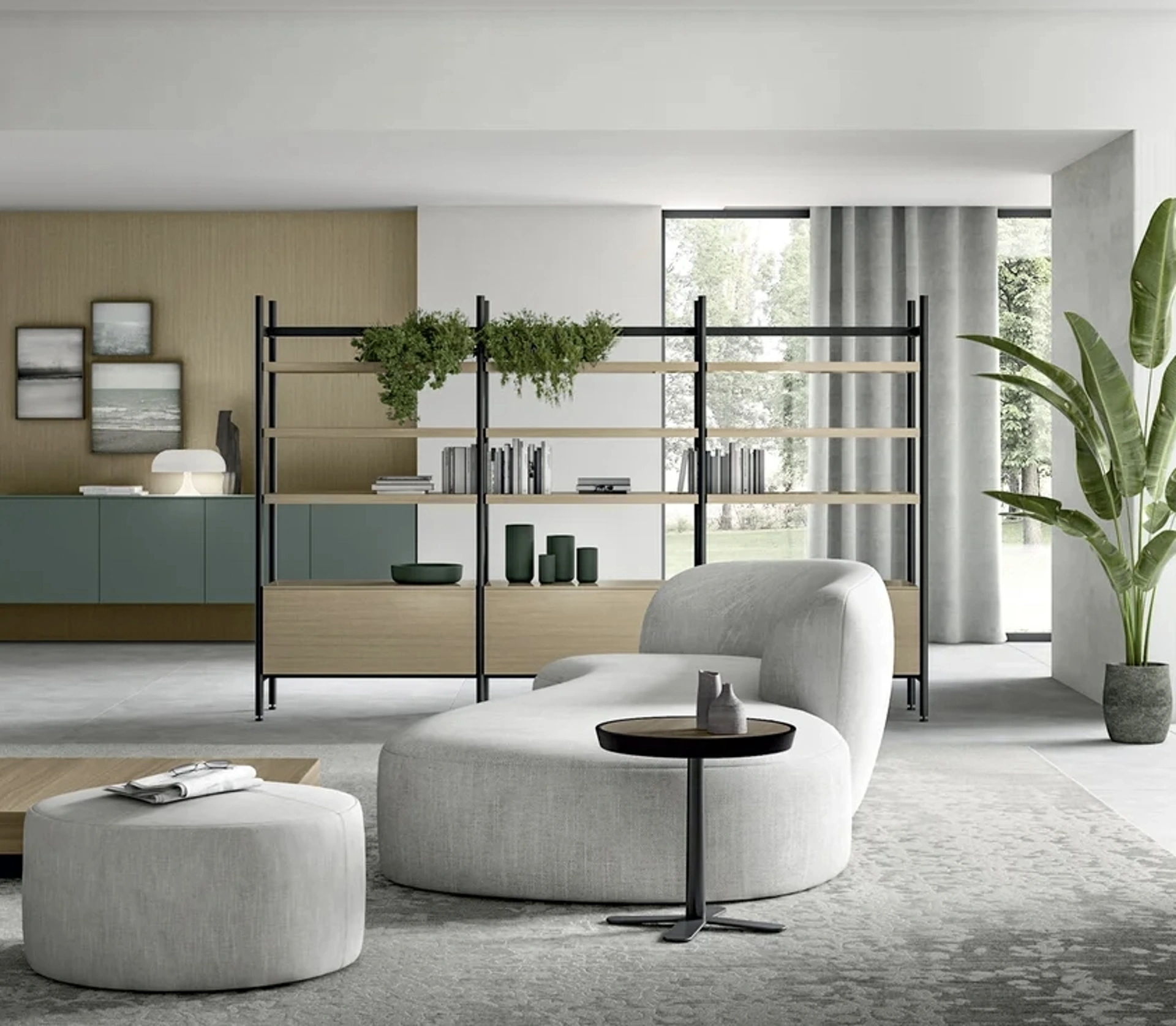 Quali opzioni di personalizzazione sono disponibili per la libreria Living Glass?La libreria Living Glass offre diverse possibilità di personalizzazione, incluse le dimensioni standard degli arredi. È possibile visionare i campioni di materiali e finiture direttamente in negozio.