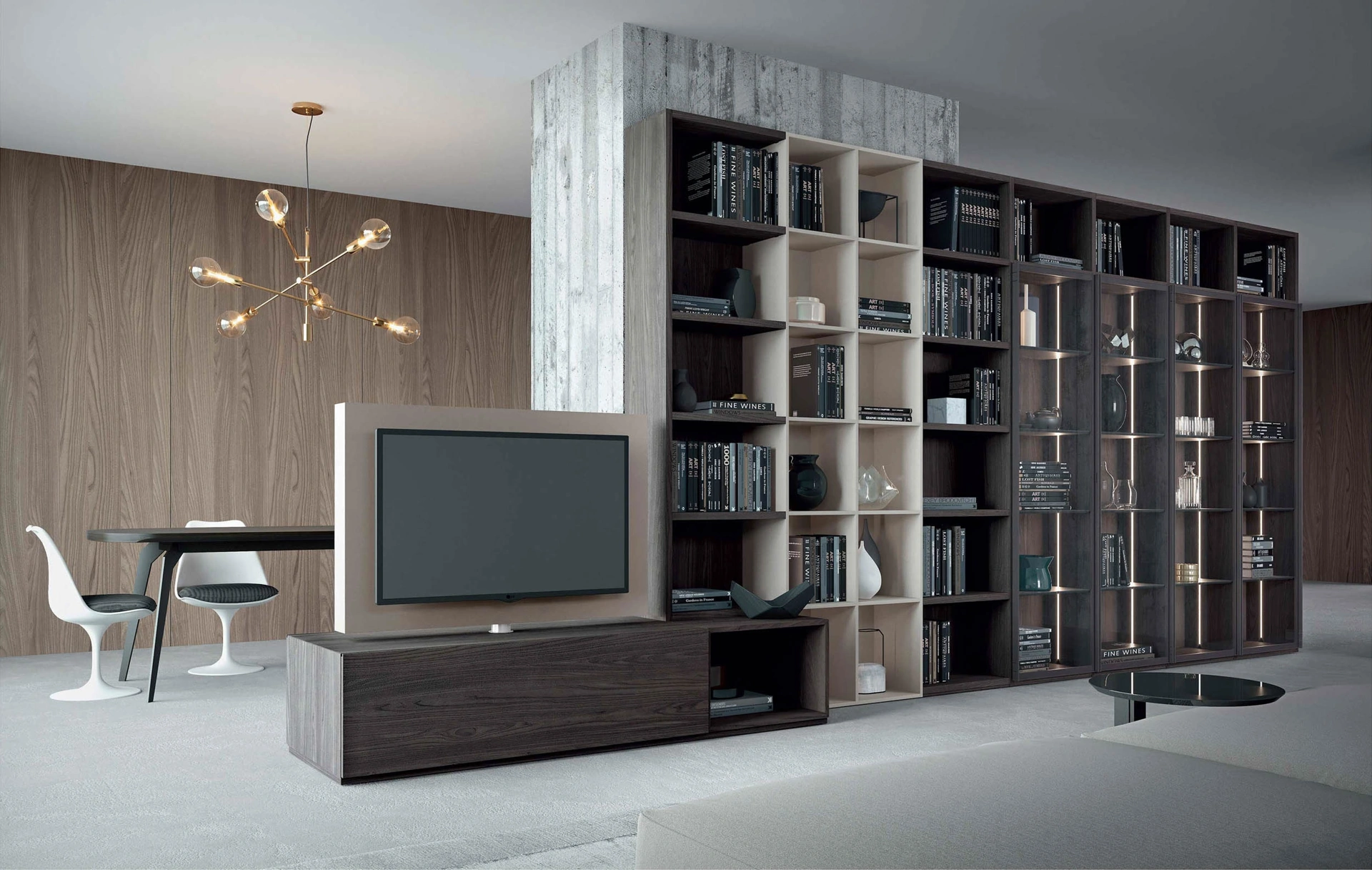 La libreria Mood 2 è personalizzabile in dimensioni e materiali?Sì, la libreria Mood 2 può essere personalizzata nelle dimensioni standard e nei materiali. Rusconi Arredamenti s.r.l. dispone di una materioteca per visionare e scegliere finiture e rivestimenti.