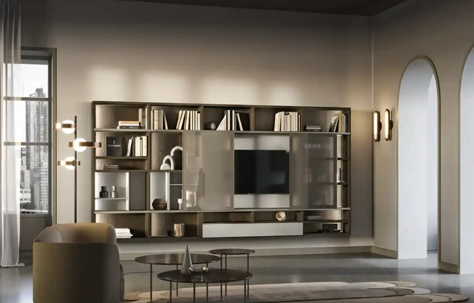 Mobile soggiorno per stanze moderne realizzata in melaminico: scopri una tra le nostre più esclusive soluzioni a muro