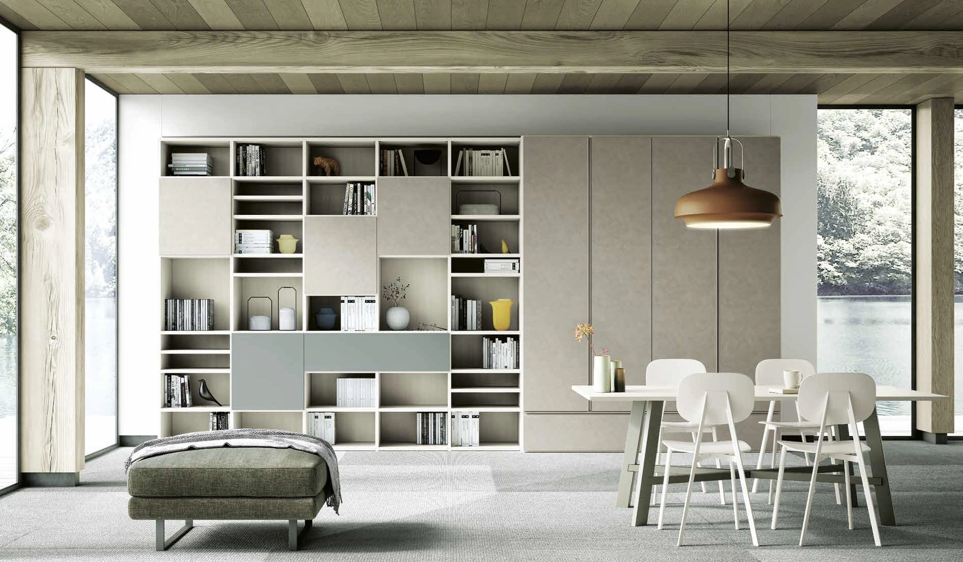 Quali materiali vengono generalmente utilizzati per il sistema Living 858 e posso vederli?I sistemi living come il Living 858 sono solitamente realizzati con materiali di qualità come legno, laminato o metallo. Presso la nostra materioteca, puoi visionare i campioni di tutti i materiali e le finiture disponibili per il tuo progetto.