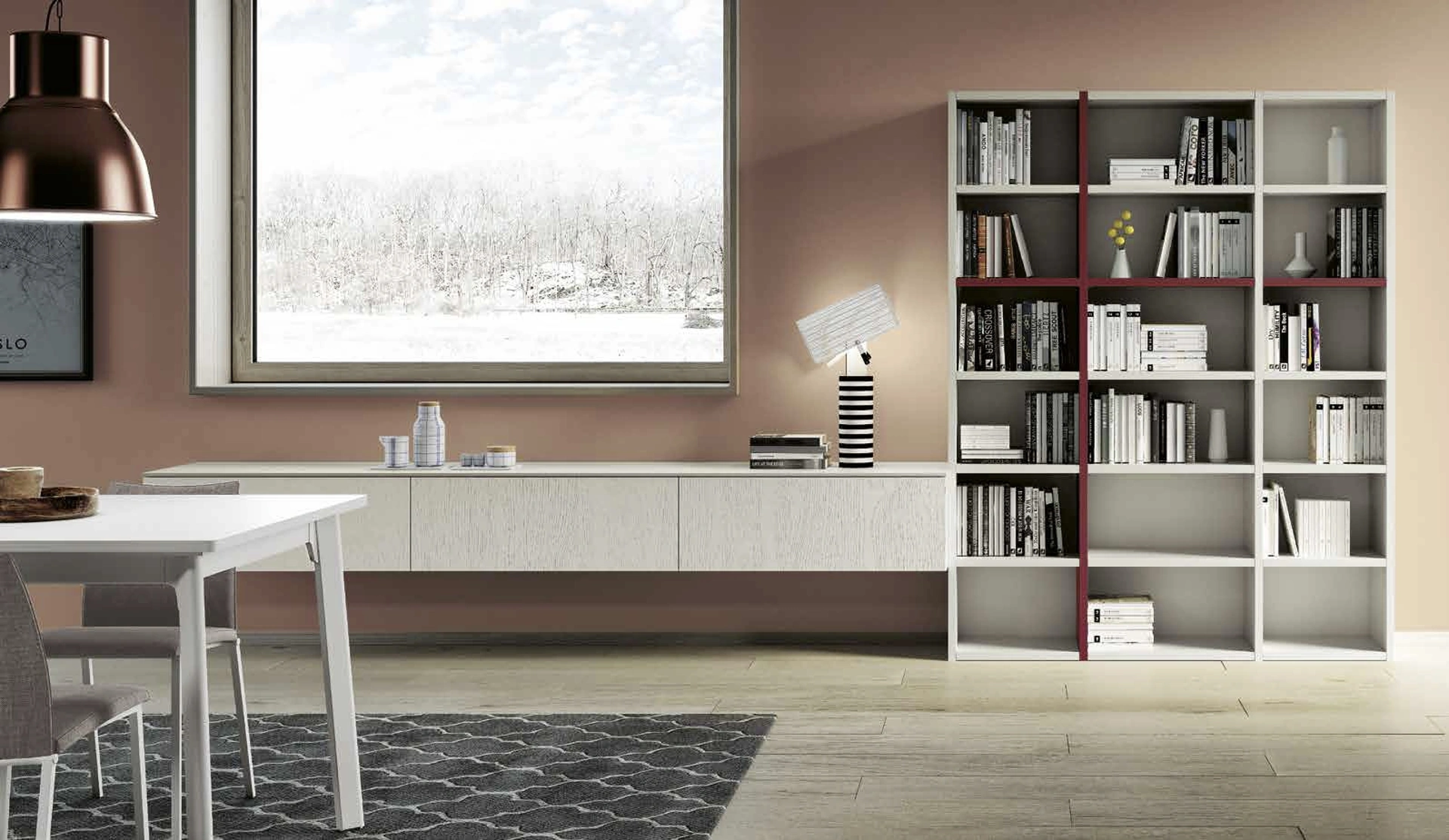 Libreria in laccato opaco di Spagnol Mobili, pensata per arredare ambientazioni moderne e organizzare al meglio gli interni