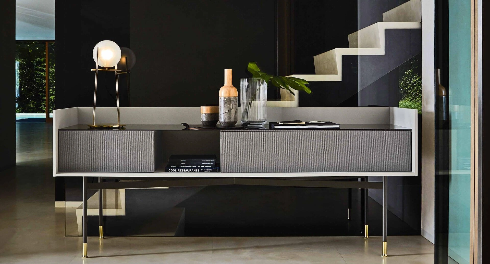 La serie Dialogo di Ditre Italia si configura come un sistema di arredo versatile, comprendente contenitori, madie e porta TV. L'elemento distintivo è la sua struttura minimale, valorizzata da un telaio in metallo che ne amplifica la percezione volumetrica e la funzionalità. La collezione si articola in quattro moduli con variazioni dimensionali e altimetriche, garantendo un'ampia adattabilità compositiva. Il concept estetico si ispira al settore dell'imbottito, integrando una finitura superficiale 'tessile' con una texture lignea unica, disponibile nelle nuance grigio/tortora o nell'essenza di Eucalipto. Le opzioni di personalizzazione includono frontali in legno Eucalipto o Legno Grey e scocche esterne in Grigio chiaro seta o Grigio Antracite, con dettagli come i puntali in Oro Gold o Cromo Nero. Questo approccio progettuale garantisce standard qualitativi elevati e soluzioni costruttive all'avanguardia.