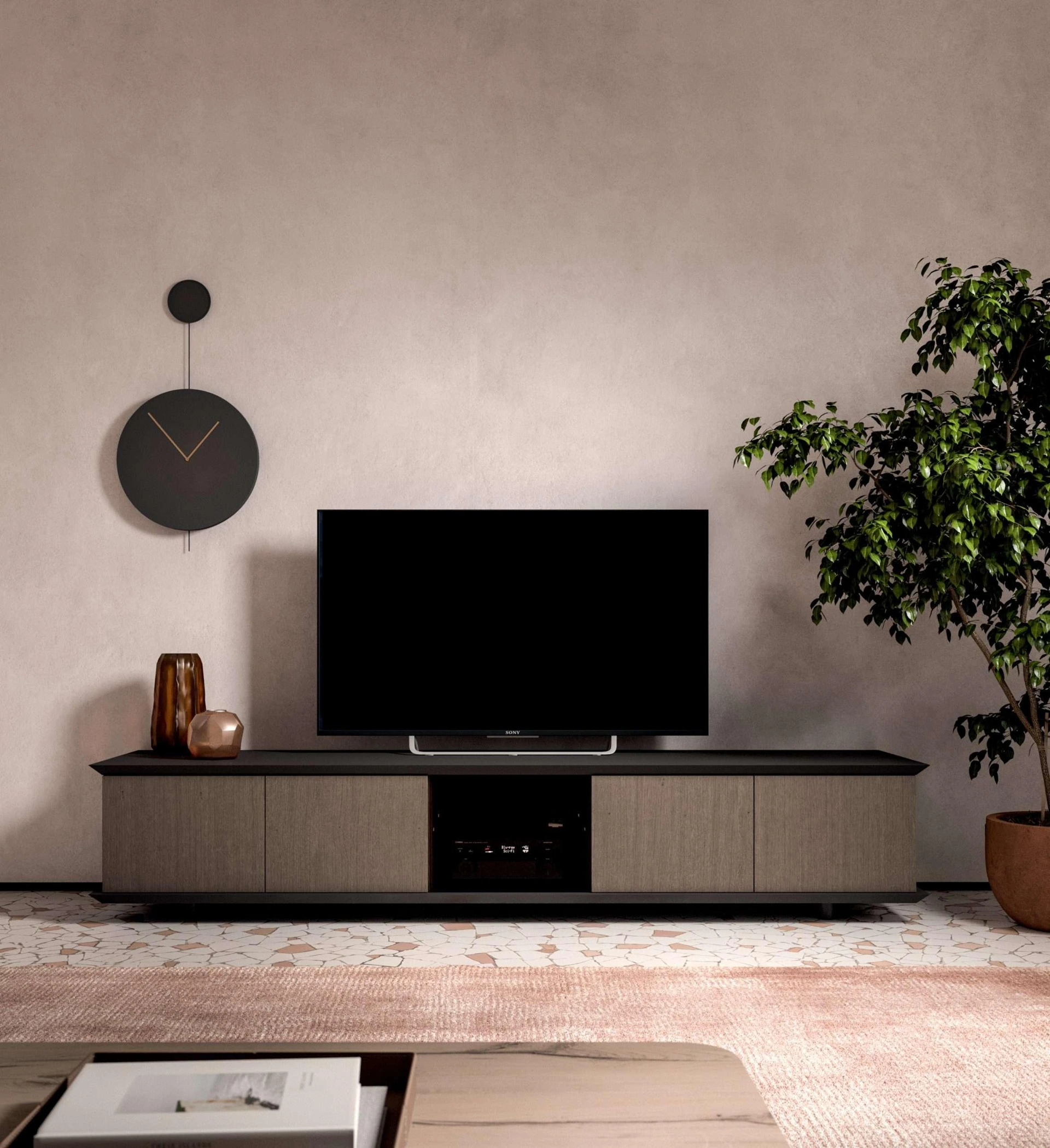 Madia dalle forme semplici Brera TV in legno ideale per customizzare e organizzare al meglio stanze moderne