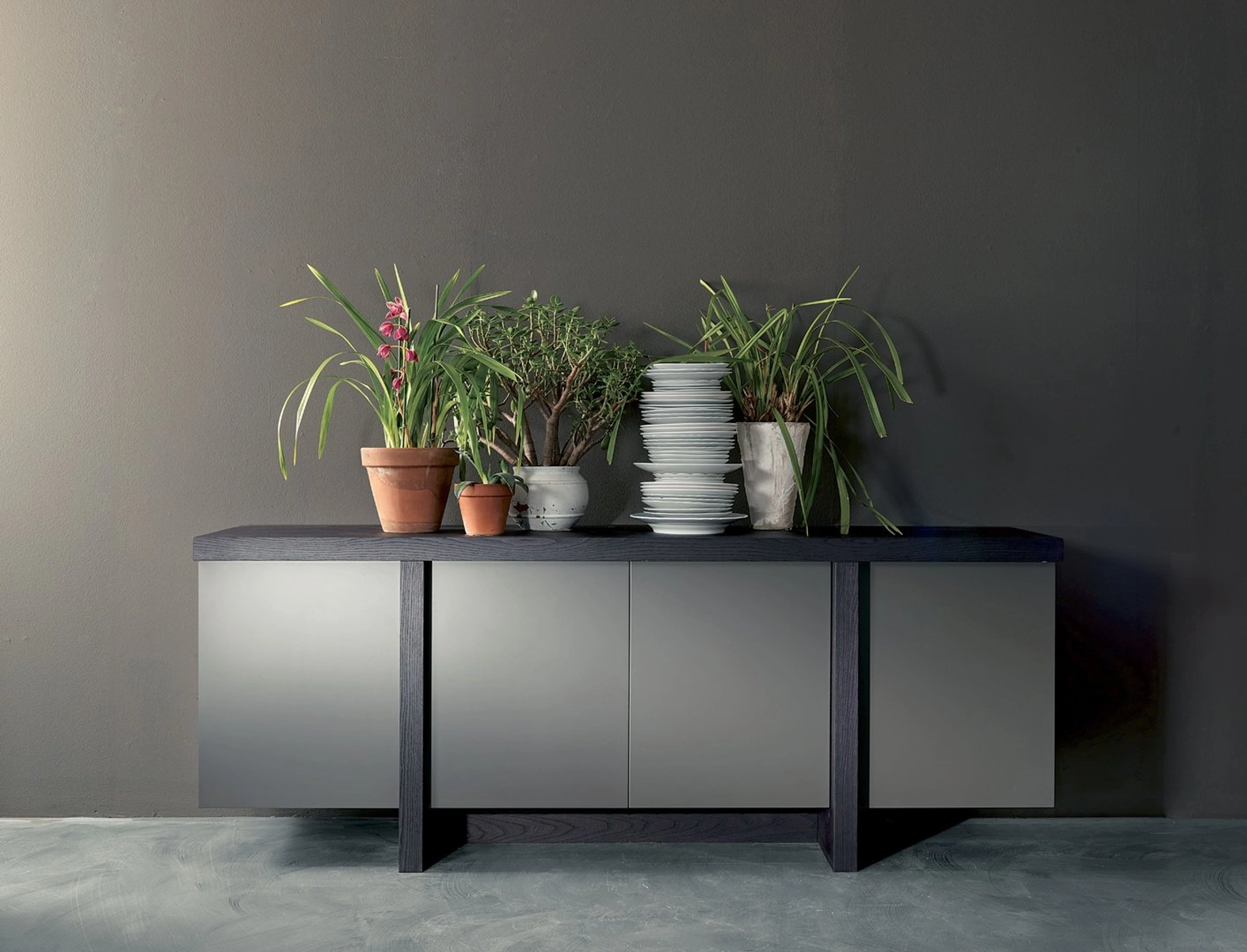 | Materiale: | Laccato opaco (finitura ardesia), essenze di legno |