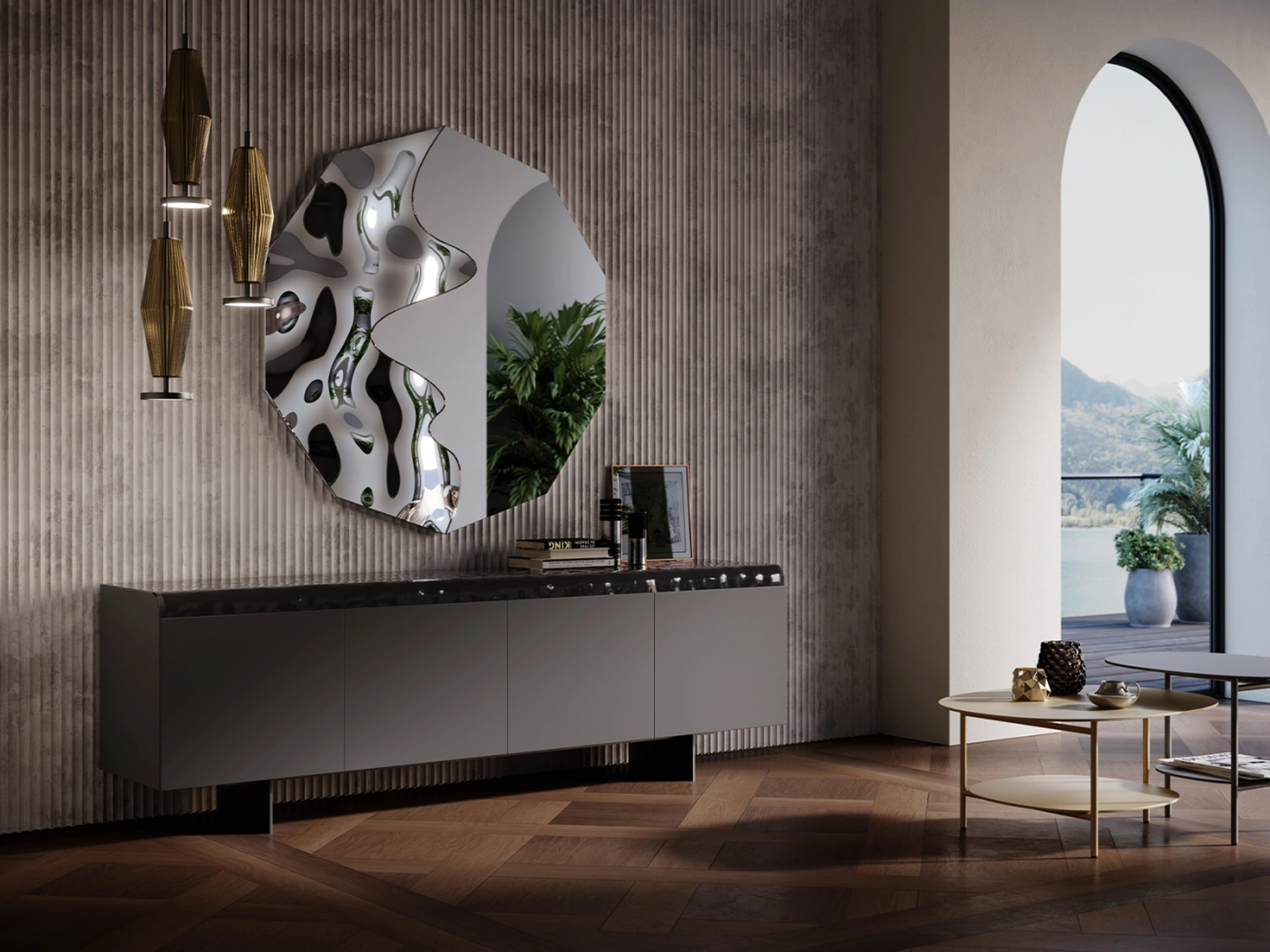 Scopri la madia Magma di Tonin Casa, un mobile contenitore che arricchisce ogni spazio con il suo design distintivo. Offriamo un servizio completo di consulenza, consegna e montaggio professionale, attivo nelle province di Olgiate Comasco, Legnano e Monza e nelle aree limitrofe, per garantirti la massima comodità. Le sue ante, rivestite con una speciale pellicola bronzo e il top in vetro martellato nero, creano un contrasto materico affascinante, ideale per ambienti moderni. I piedini in metallo bronzato completano l'estetica sofisticata. Il nostro impegno si estende oltre l'acquisto, garantendo un'assistenza completa e ricambi originali per mantenere il valore del tuo arredo nel tempo, con la massima cura per ogni dettaglio.