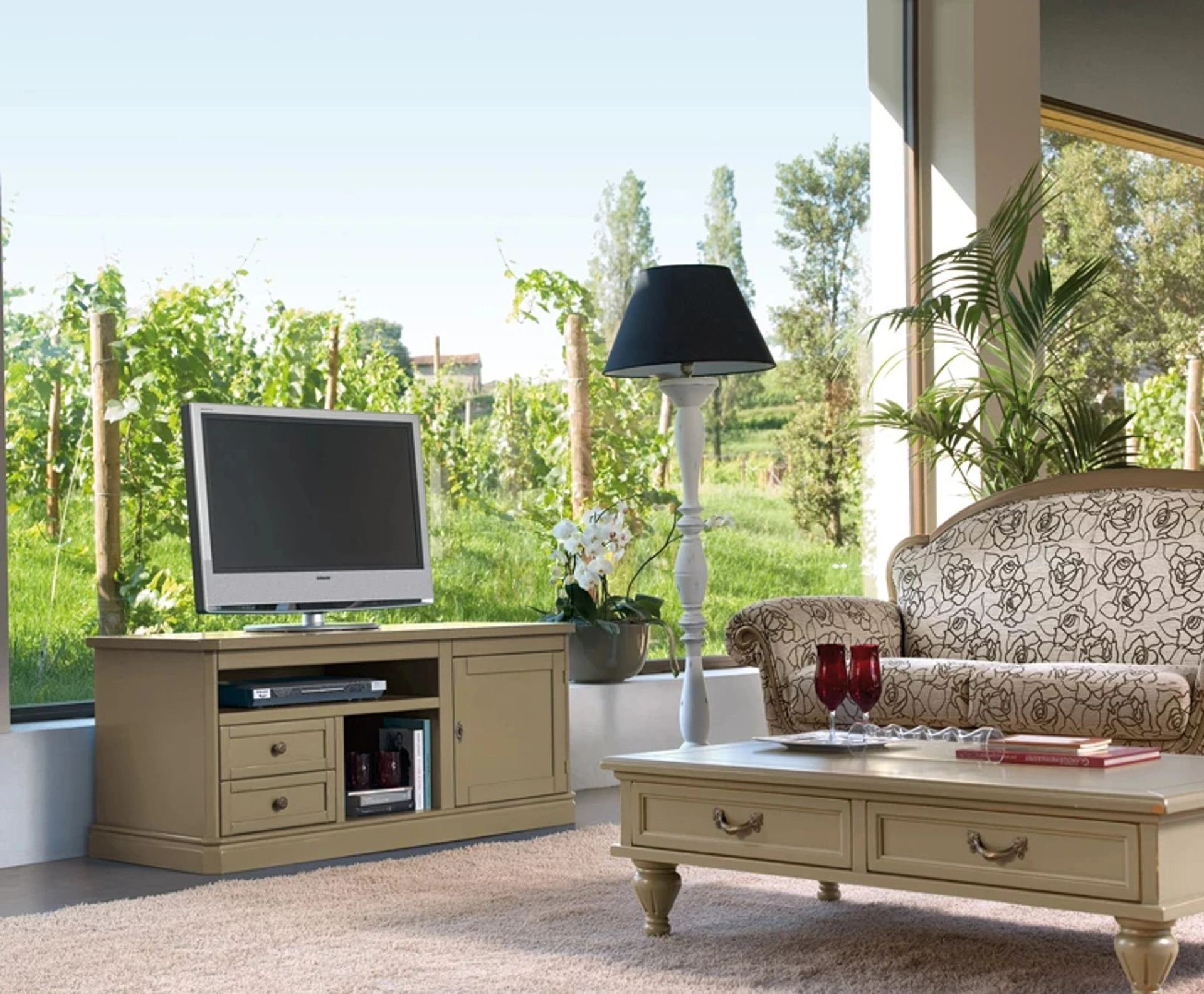 Mobile soggiorno dalle forme semplici Oliver in legno laccato ideale per personalizzare e organizzare al meglio stanze classiche