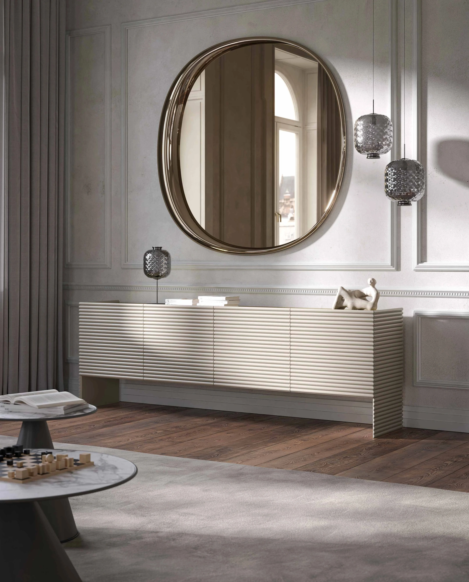 La madia Patsy di Tonin Casa, un mobile dal design raffinato in Legno laccato, specchio bronzato (per il top opzionale) con distintive fresature orizzontali, è disponibile con un servizio completo di progettazione su misura e consegna dedicata. Offriamo un'assistenza personalizzata per l'arredamento di alta qualità, con consegne agevoli e rapide nelle aree di **Bellinzona, Varese, Tradate** e molte altre località limitrofe. La possibilità di personalizzare il top con specchio bronzato è solo uno dei dettagli che valorizziamo con il nostro supporto esperto, garantendo un'esperienza d'acquisto senza pensieri. Ogni acquisto è supportato dalla nostra garanzia di qualità e un'assistenza post-vendita attenta, per un arredamento che dura nel tempo e mantiene il suo valore, offrendo serenità assoluta.