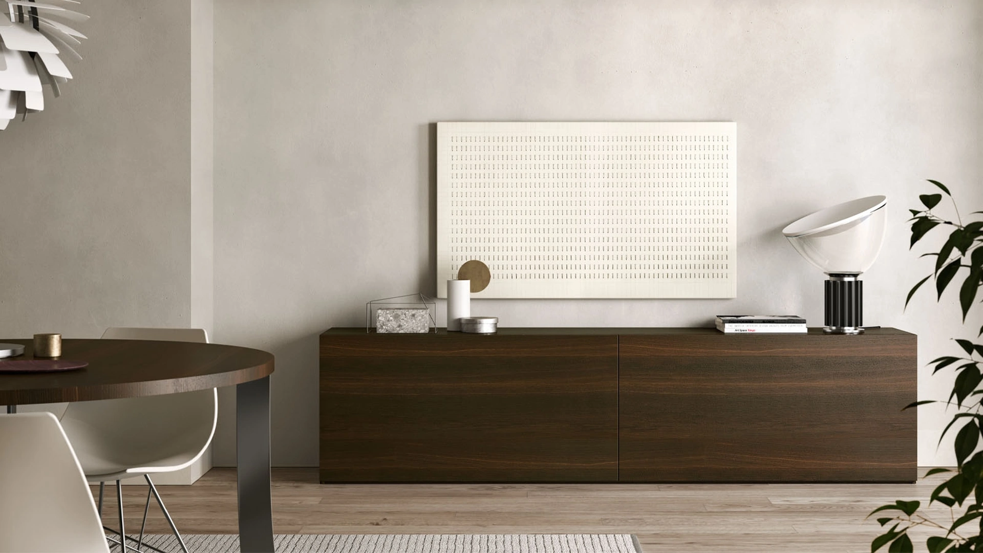 La madia People di Pianca, con la sua raffinata struttura a folding, incarna un design che privilegia la continuità visiva delle superfici e l'integrazione delle prese, per un'estetica di notevole eleganza e pulizia formale. Questo sistema modulare è progettato per offrire un'ampia versatilità espressiva, consentendo configurazioni personalizzate che si adattano armoniosamente a molteplici contesti abitativi. La finitura 'Borgogna', disponibile per la struttura, i frontali e la base, è solo una delle diverse opzioni che includono essenze come Canaletto e Rovere, oltre a laccature opache o lucide. I frontali possono essere impreziositi da dettagli in cuoio, mentre le basi sono disponibili in raffinate finiture metalliche quali Bronzo, Champagne, Cromo e Titanio, confermando l'alta qualità dei materiali impiegati. La scelta di materiali di alta qualità e l'attenzione ai dettagli costruttivi assicurano una durata eccezionale, garantendo un investimento nel tempo che mantiene inalterato il suo valore estetico e funzionale.