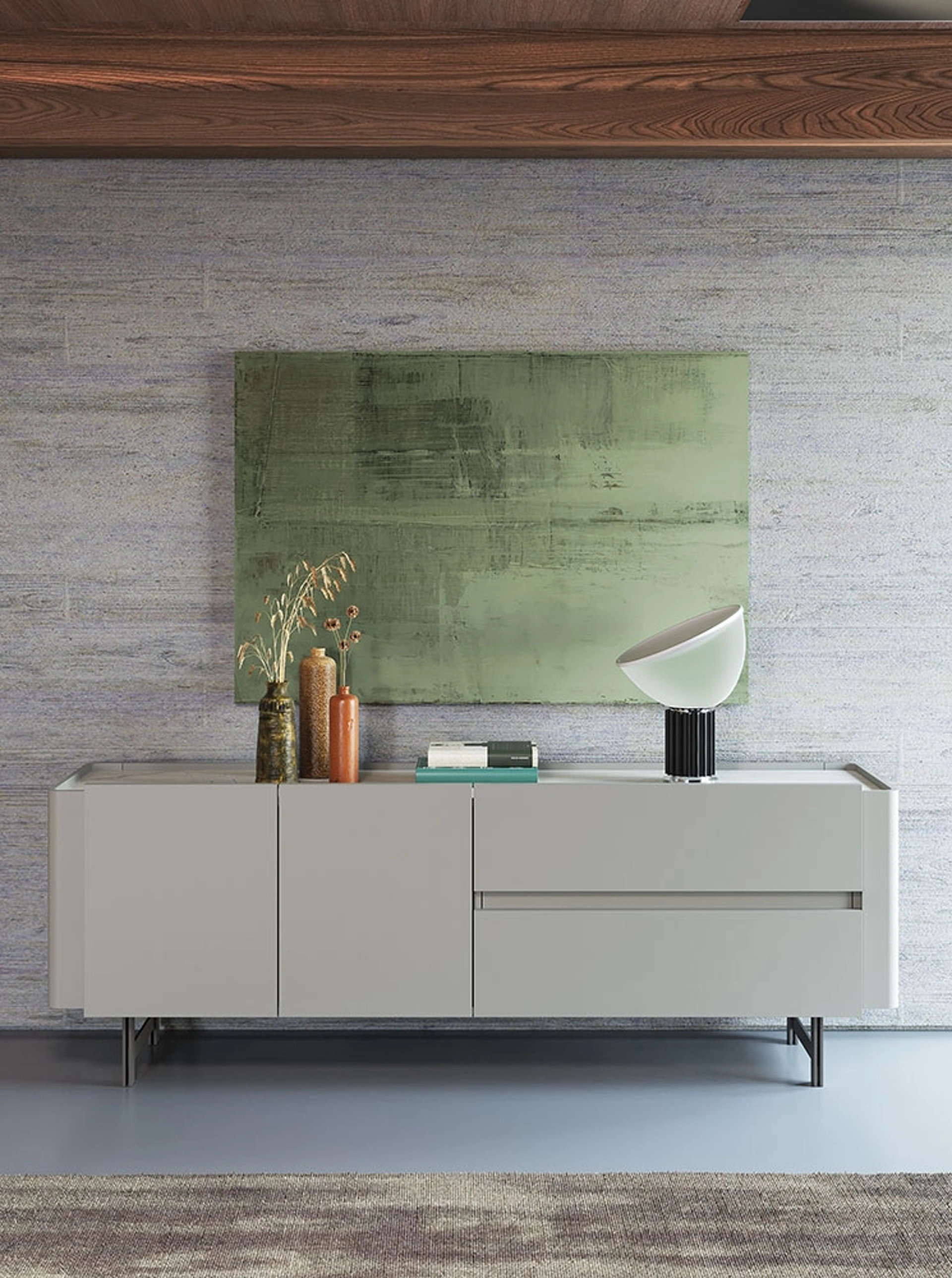 Scopri la Madia Surf di Astor Mobili, una soluzione d'arredo che unisce estetica e praticità, ora disponibile con i nostri esclusivi servizi di consegna e montaggio professionale. Caratterizzata da una sofisticata finitura in laccato grigio silk, un elegante top in HPL 'marble sand' e una solida struttura in metallo laccato titanio, questa madia è pensata per arricchire con stile ogni ambiente moderno. Offriamo consulenza personalizzata e un servizio di installazione accurato in diverse località, inclusi Lugano, Varese e Saronno, garantendo massima cura e attenzione. Affidati alla nostra professionalità per un acquisto senza preoccupazioni, beneficiando di un prodotto di alta qualità e di un'assistenza post-vendita completa per la tua totale tranquillità.