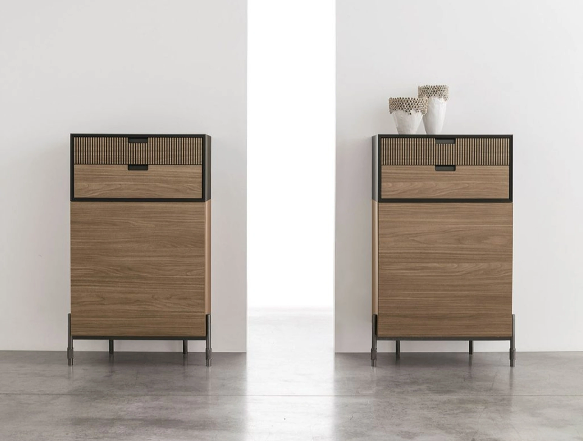 La Madia Time H di Tomasella, appartenente all'esclusiva collezione Time, è un mobile contenitore progettato con finiture di pregio in CDF venato nero, noce ambra e l'innovativo noce ambra canettè. La sua struttura si eleva su un basamento in metallo antracite 160, garantendo stabilità e un'estetica contemporanea. Le sue dimensioni sono 79 cm di larghezza, 51 cm di profondità e 125 cm di altezza. Questa soluzione d'arredo è ideale per chi ricerca funzionalità avanzate e un design curato nei minimi dettagli. La cura nella selezione dei materiali e nelle tecniche di produzione assicura una qualità costruttiva impeccabile e una lunga durata nel tempo.