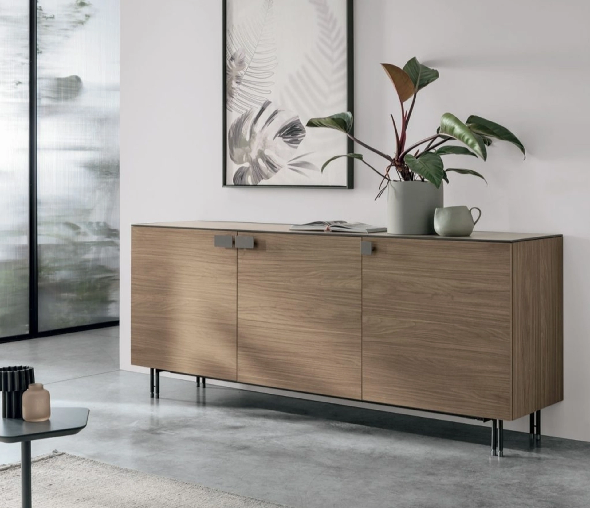 Scopri la nostra serie di Madie moderne in melaminico di Tomasella: il modello Basilea Noce Ambra ti attende