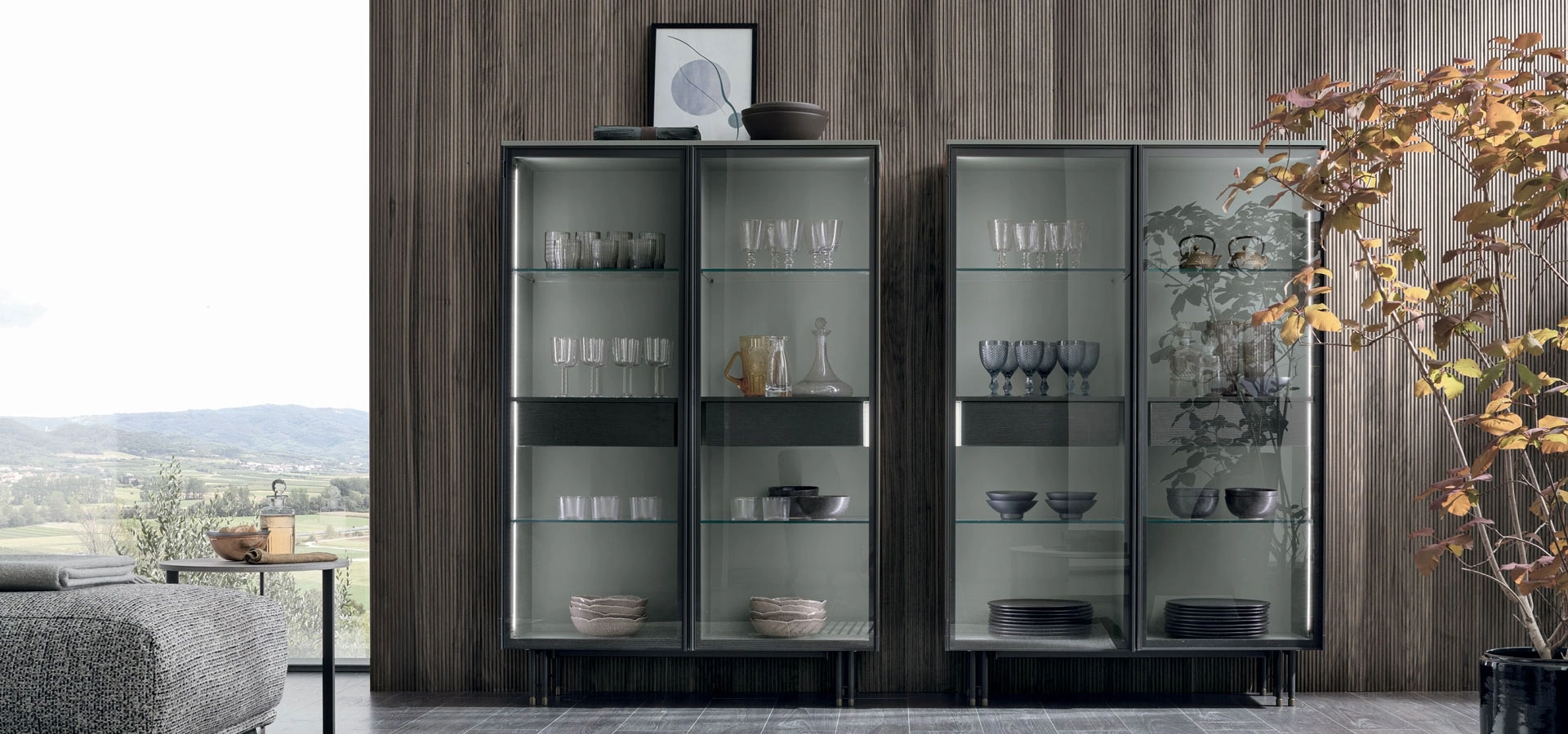 | Materiale: | Vetro, Laccato basalto 176, Materico rovere carbone, Metallo antracite, Metallo ottone |