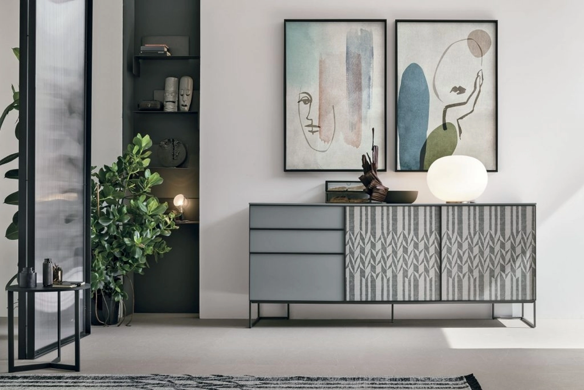 Presso Rusconi Arredamenti s.r.l. a Cirimido, siamo il vostro punto di riferimento per l'arredamento di qualità nella provincia. Questo pezzo d'arredo moderno si distingue per un design sofisticato, esaltato da un profilo metallico che incornicia i frontali. Le finiture, che spaziano dal raffinato noce canettè all'elegante effetto pietra, creano un'armonia materica e visiva di grande impatto. La sua notevole versatilità consente di configurarla in molteplici varianti, adattandosi con grazia a diversi stili d'arredo contemporanei e offrendo soluzioni personalizzate per ogni ambiente.