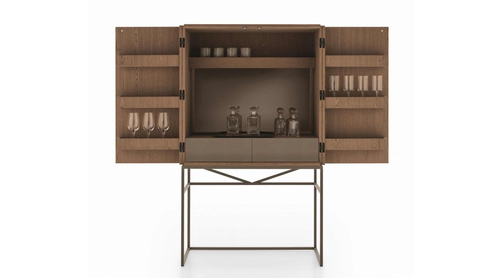 Scoprite il raffinato mobile bar Unit Priv Box di Ditre Italia, una creazione di Daniele Lo Scalzo Moscheri, ideale per arricchire con stile la vostra zona giorno. Questo mobile cocktail, che evoca l'eleganza di uno scrigno, si presta anche come discreto secretaire o esclusivo Glamour Box per la camera da letto. Il design compatto valorizzato da un'ingegnosa apertura delle ante a 180 gradi, garantendo un accesso agevole al vano interno. Per le vostre esigenze di arredo, offriamo un servizio di consegna e montaggio efficiente e professionale, attivo in aree come Olgiate Comasco, Legnano, Chiasso, assicurando che il vostro nuovo arredo arrivi impeccabile. Le dimensioni sono di 100 x 54 x 171 cm, con finiture di pregio tra cui base in metallo light brown, struttura in noce cioccolato, dettagli in vetro bronzato e frontali dei cassetti in pelle. Siamo dedicati a fornirvi non solo prodotti di eccellenza, ma anche un supporto completo post-vendita, con garanzia estesa e un'assistenza dedicata per assicurarvi la massima tranquillità nel tempo.