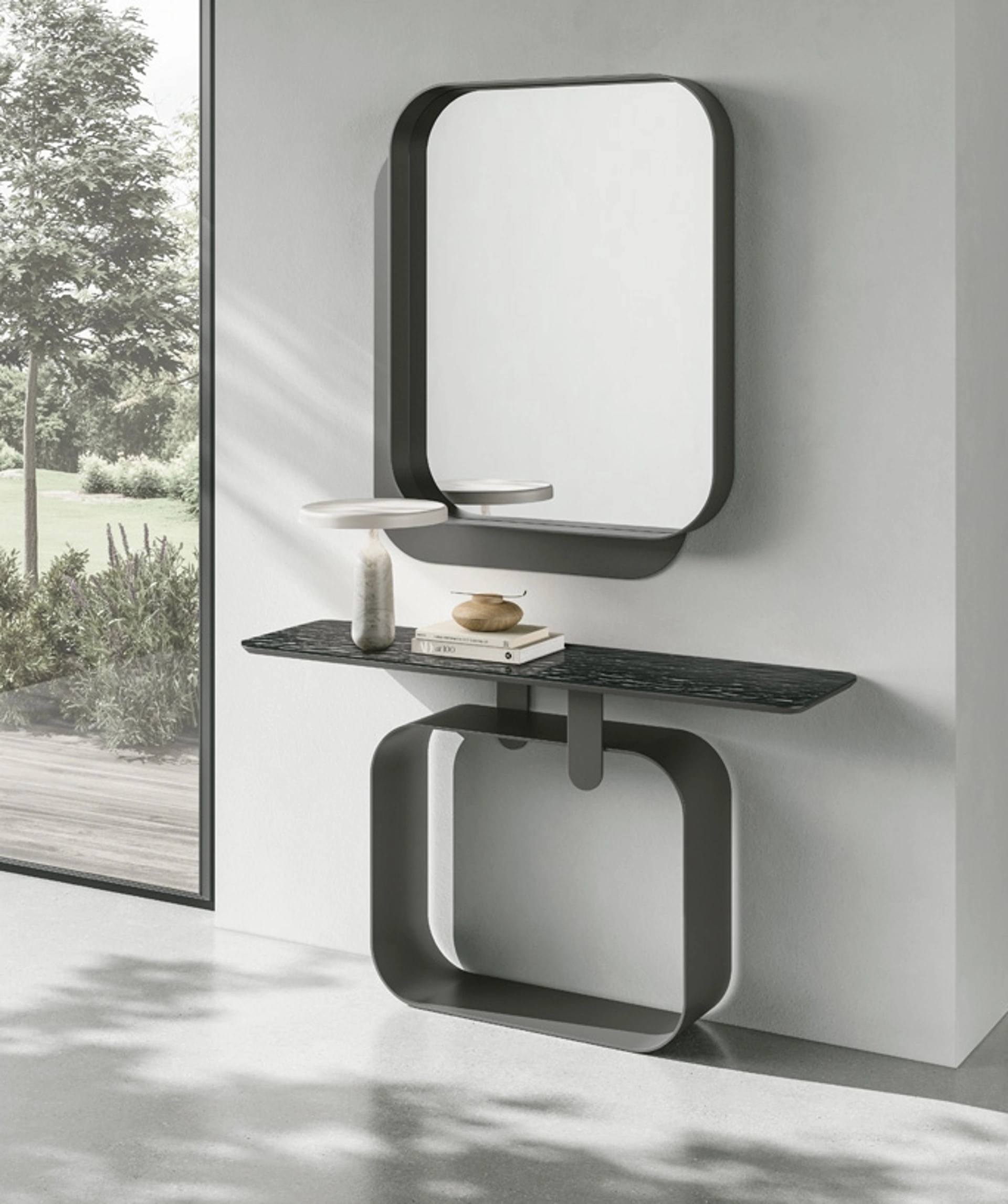 Il modello Consolle Quadra in gres presente in foto, uno tra i mobili Target Point per ingressi design, ti attende
