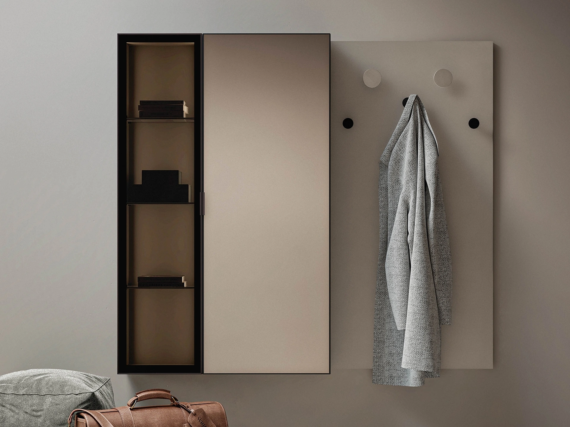 Il modello Gola Up composizione 2 in laccato opaco visibile in foto, uno tra i mobili Birex per ingressi moderni, ti attende
