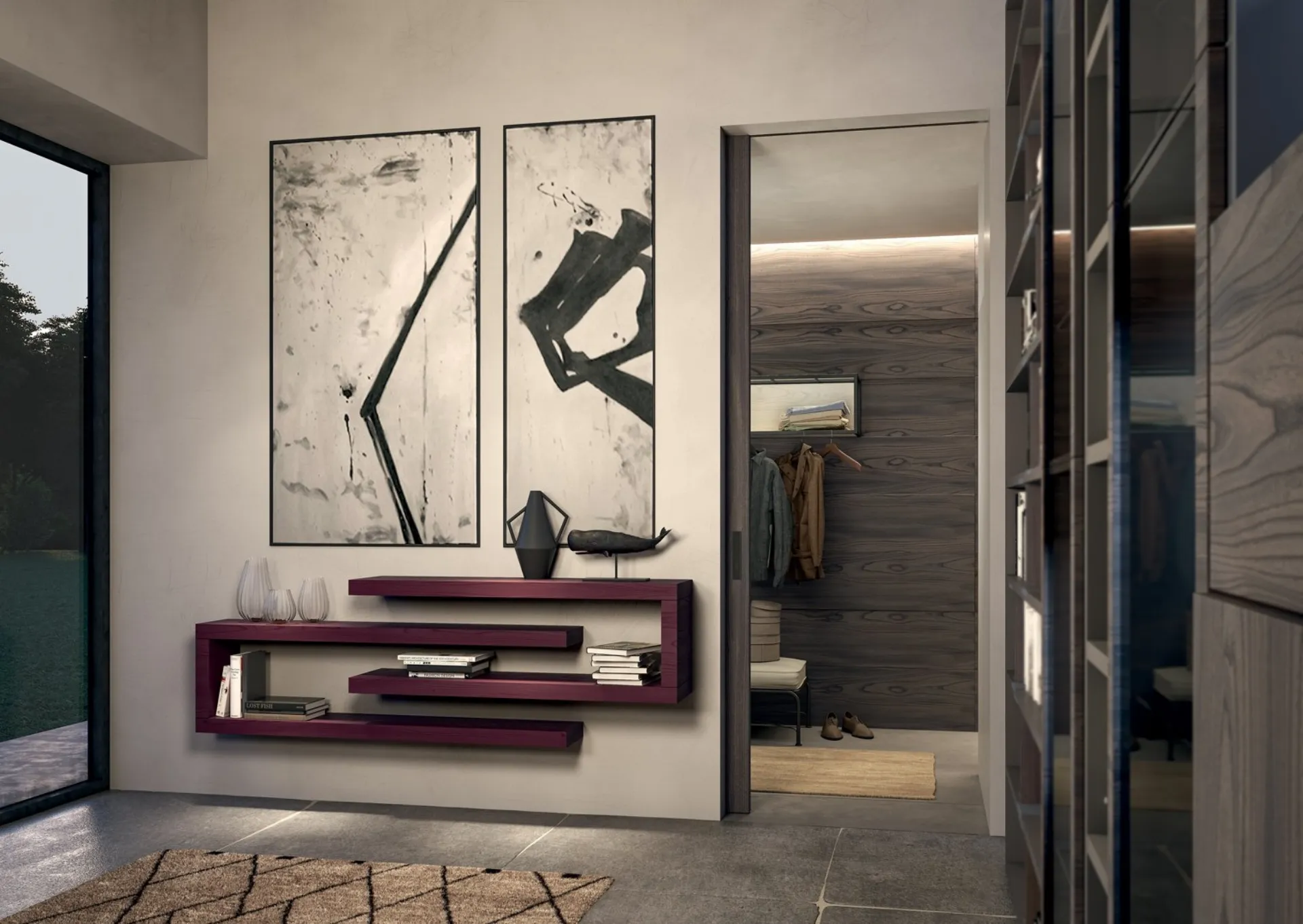 Il modello Side CF 018 in laccato opaco presente in foto, uno dei mobili Fimar per ingressi design, ti aspetta