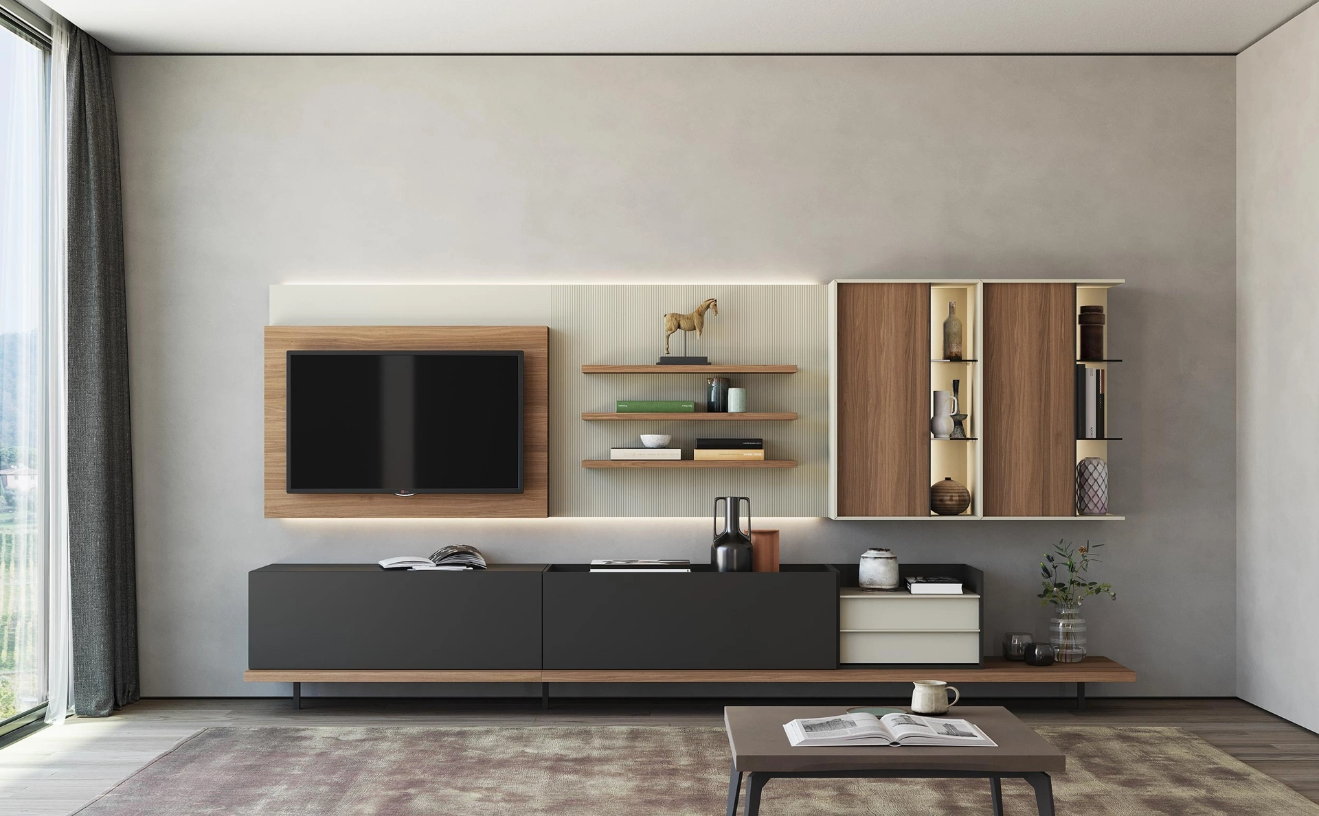 Questo modello X2 in legno è uno tra i mobili soggiorno moderni della marca Astor Mobili