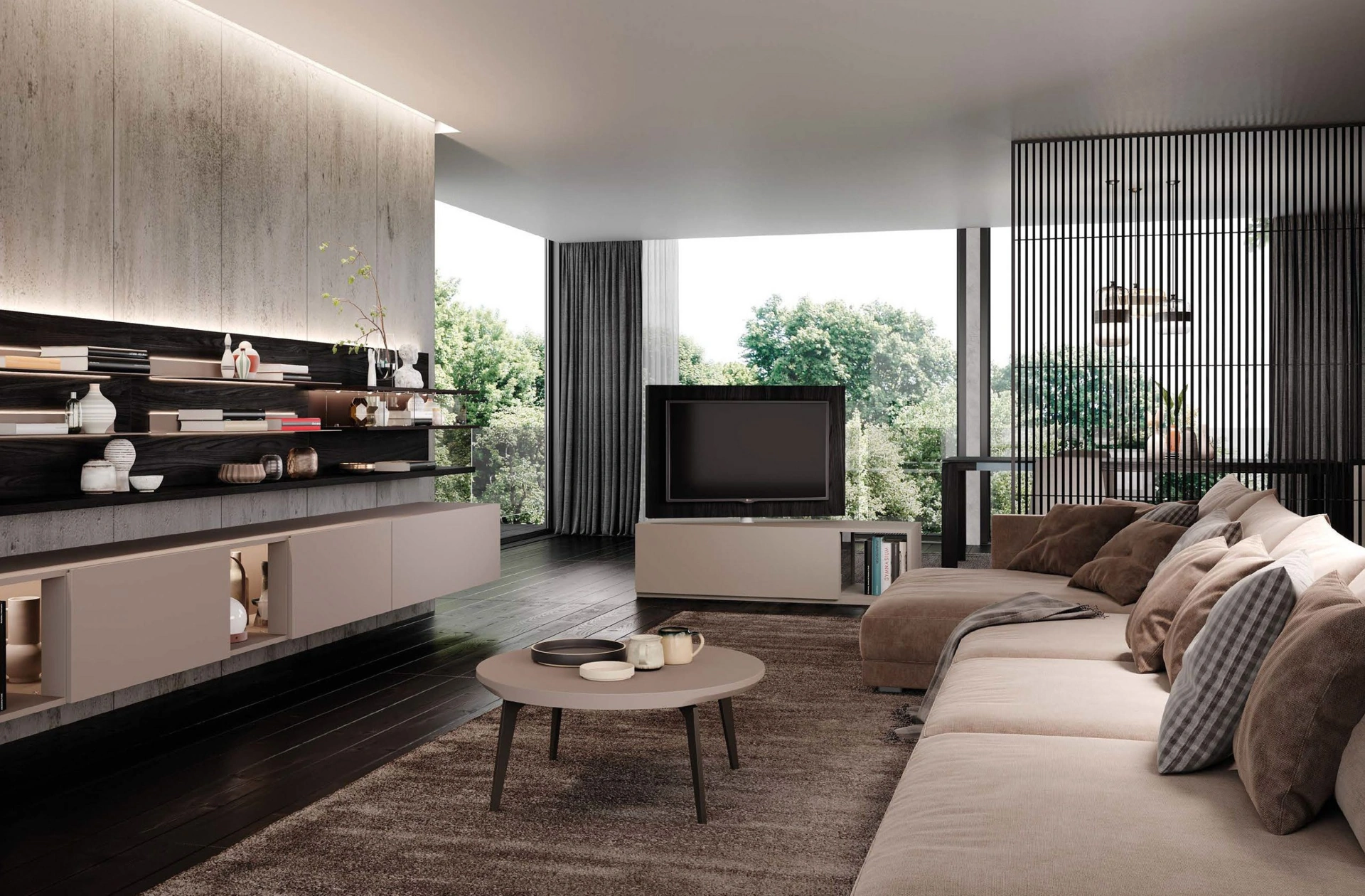 Scopri la nostra serie di mobili giorno Astor Mobili: il modello in laccato opaco Skyline Informal space organization ti aspetta